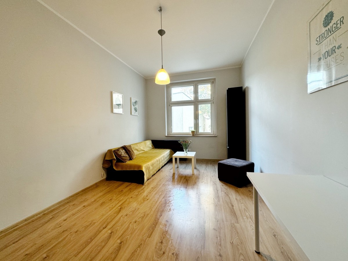 Zapraszam do zapoznania się z ofertą sprzedaży mieszkania na 1. piętrze w kamienicy na poznańskim Łazarzu, przy ul. Kanałowej. Mieszkanie nie znajduje się we frontowej części kamienicy, widok z mieszkania na dziedziniec.