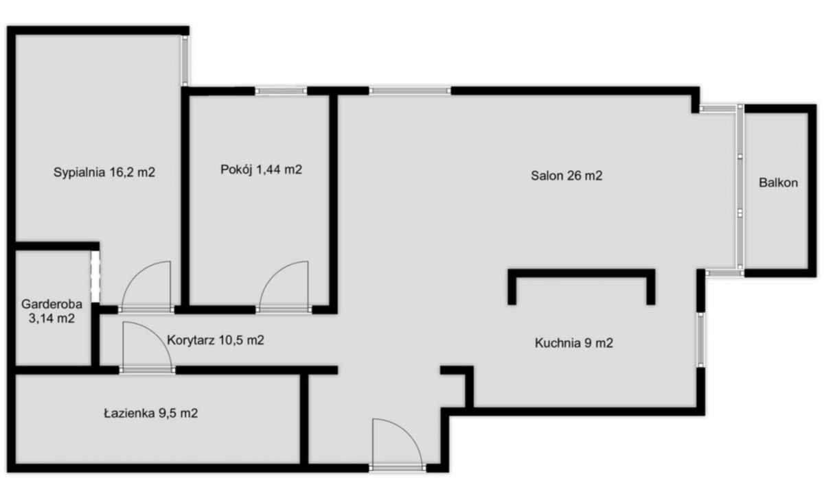 Układ mieszkania jest czytelny i ergonomiczny - wyraźnie oddziela strefę dzienną od prywatnej, zapewniając komfort codziennego użytkowania.
