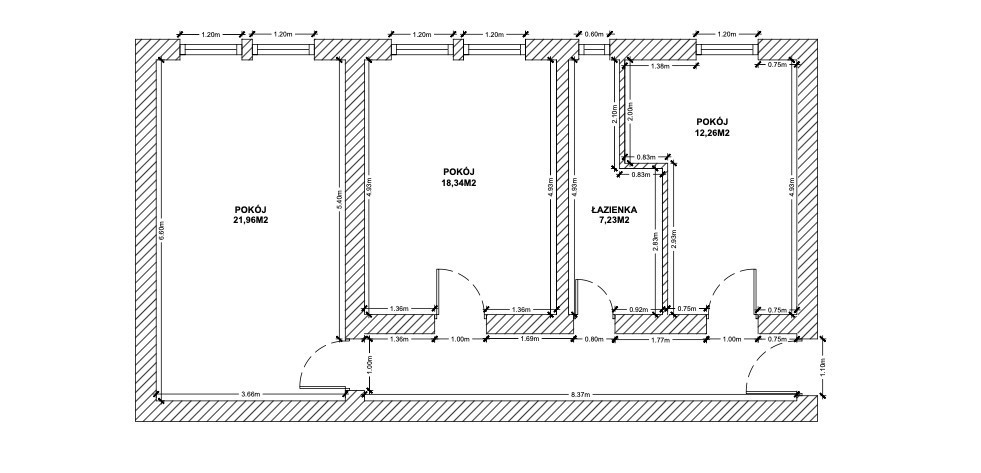 - trzy przestronne pokoje: 25 m², 17 m² i 12 m²