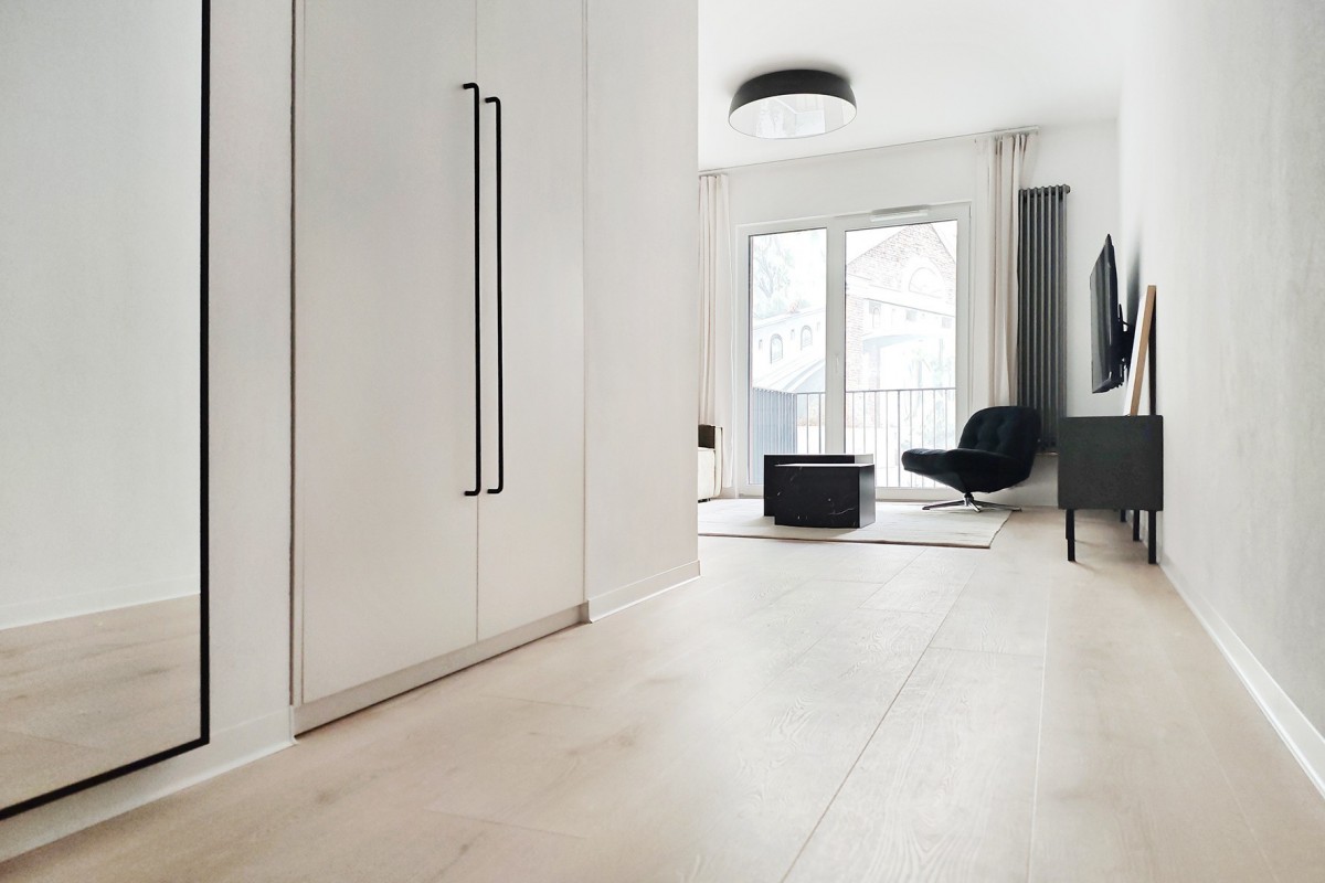 Nieruchomość formalnie to przestronne 1-pok mieszkanie gdzie pomieszczenie garderoby z oknem zostało przez projektantkę wnętrz umiejętnie zaadaptowane na wydzieloną strefę sypialną.