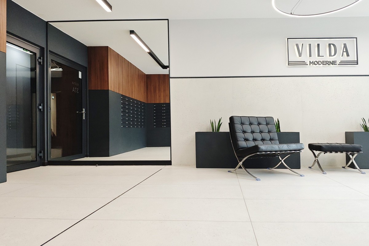 Do mieszkania przynależy komórka lokatorska (20 000 zł) oraz miejsce parkingowe w hali garażowej (50 000 zł) - zakup obligatoryjny. Budynek:Vilda Moderne uzupełnia pierzeję u szczytu zabytkowych, słynnych schodów łączących ulice Dolna Wilda oraz Górna Wilda. To jeden z symboli tej części Poznania. Schody zaprojektował w latach 30. XX w. wybitny architekt Władysław Czarnecki, a latem 2020 r. otwarto je po gruntownym remoncie. Przywrócony został ich dawny wygląd, łącznie z lampami w stylu art déco. Części wspólne zostały zaprojektowane zostały z wykorzystaniem wysokiej jakości materiałów wykończeniowych i dbałością o detale. W budynku znajdzie się reprezentacyjny hol wejściowy oraz eleganckie korytarze.