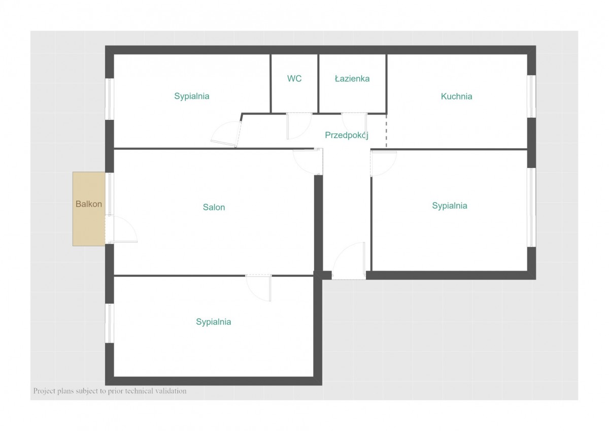 ● salonu z wyjściem na balkon - ok. 15,2 m²;