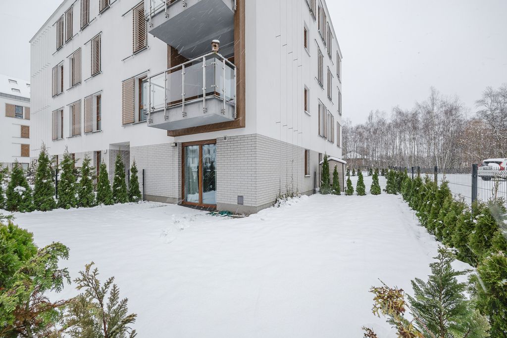 Mieszkanie posiada ogrodzony ogród o powierzchni ok. 70 m², a dodatkowo komórka lokatorska o powierzchni 4,82 m² oraz miejsce w hali garażowej znajdujące się pod budynkiem, które są obligatoryjne do zakupu, a cena za obydwie przynależności wynosi 50 000 zł.