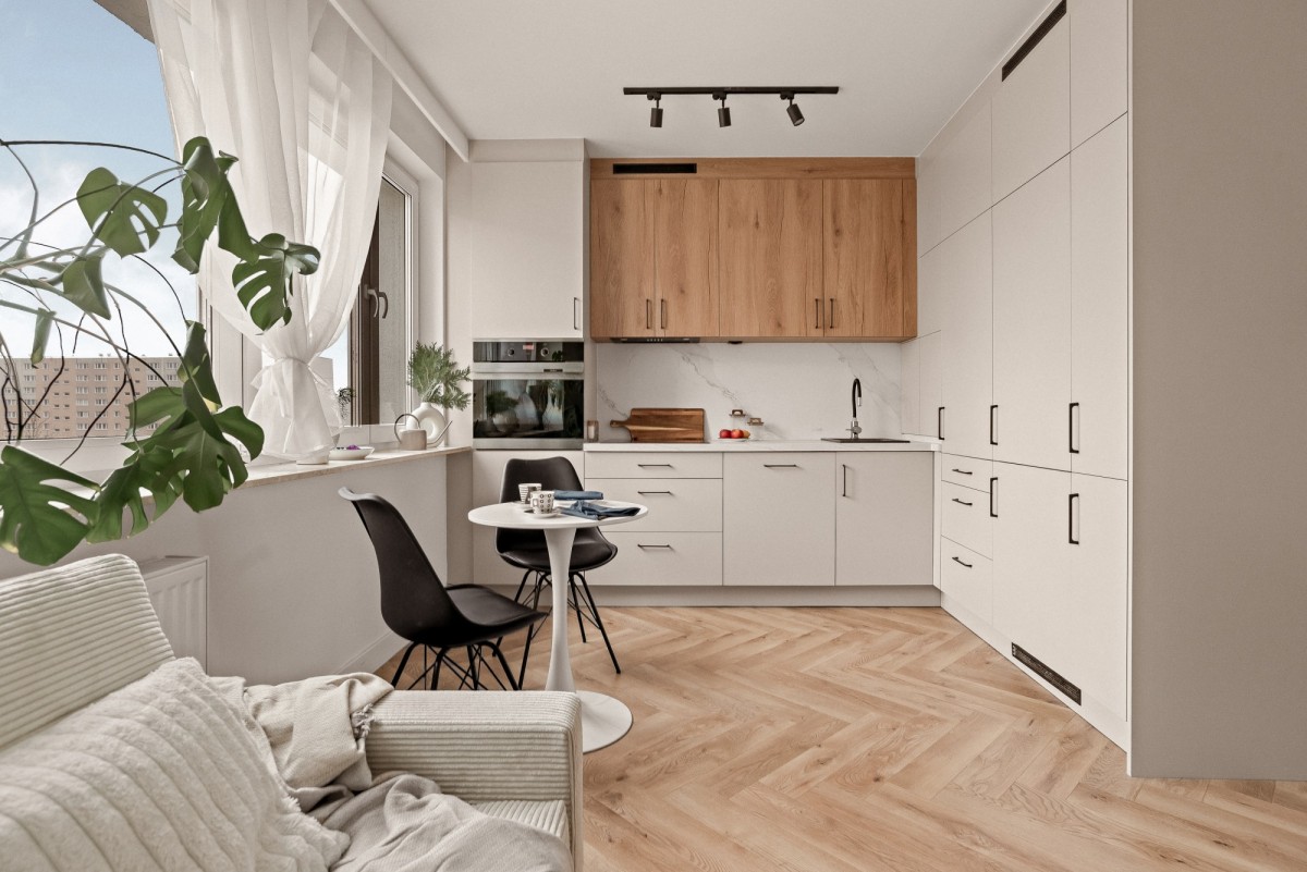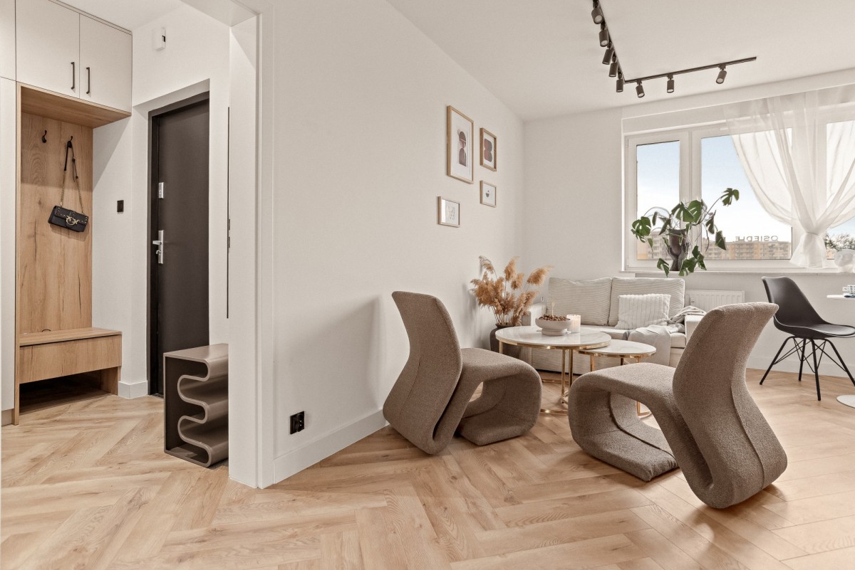 Wnętrze jest jasne, ustawne i optymalnie zaplanowane: