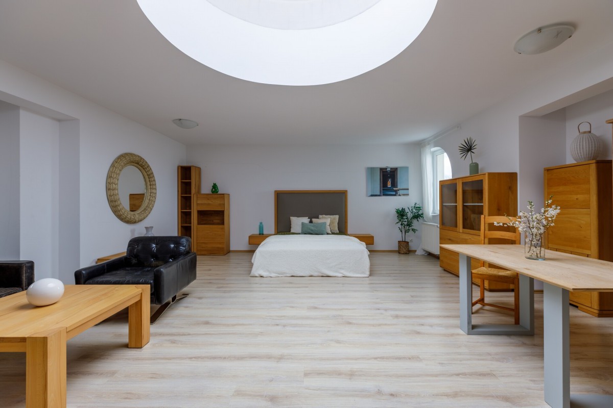Tutaj możesz stworzyć swoje mieszkanie połączone z biurem. Ilość pokoi spokojnie wystarczy na pracę w trybie