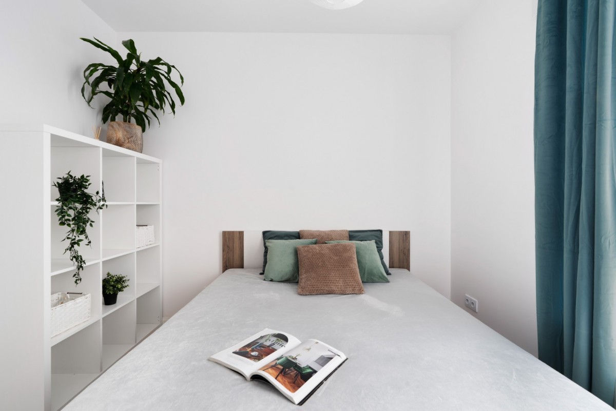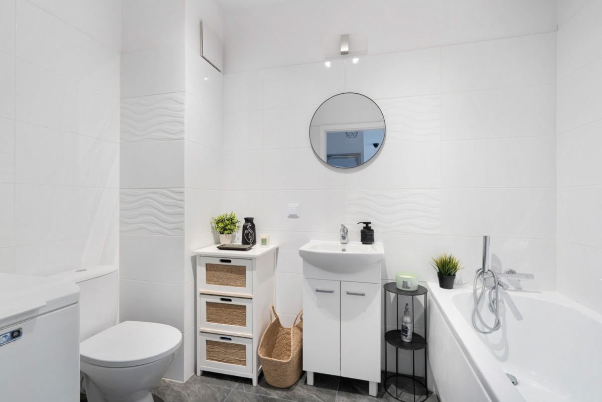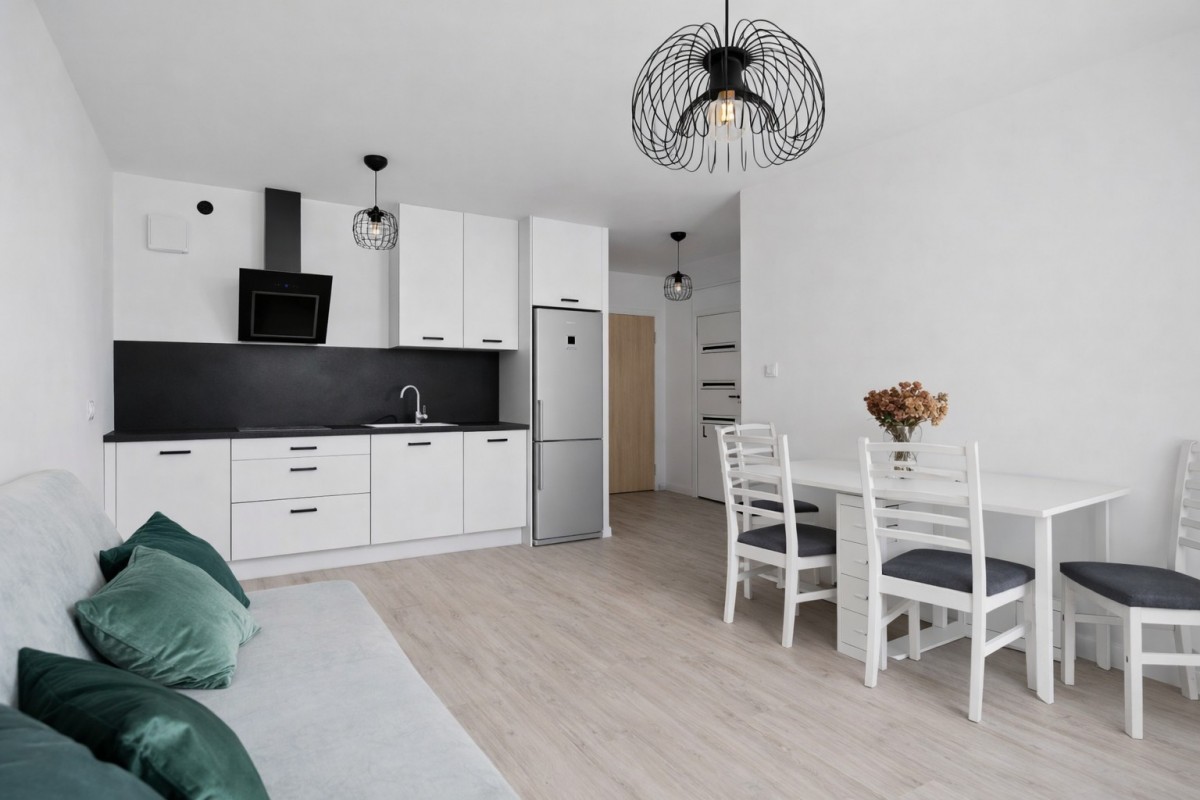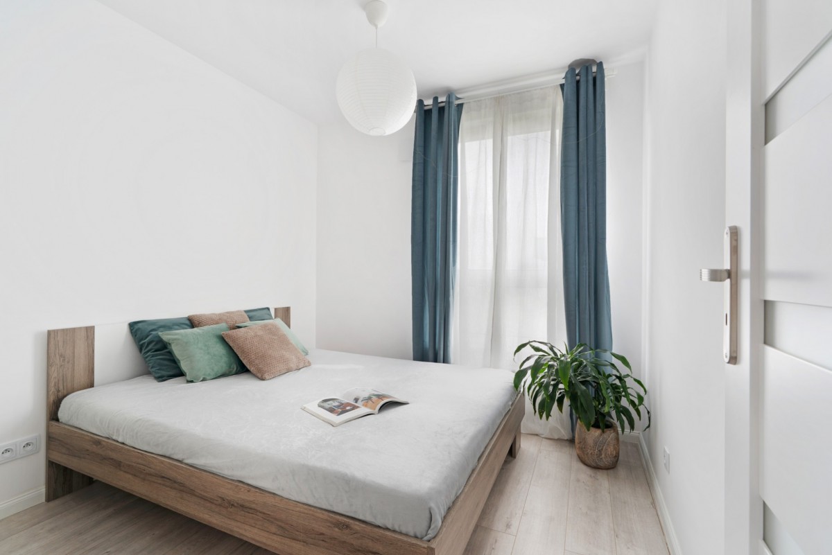 Lokal jest wykończony, o funkcjonalnym układzie, który dobrze sprawdza się przy tym metrażu. Przestrzeń została zaplanowana w sposób praktyczny, z wyraźnym podziałem na część dzienną i prywatną. Balkon stanowi dodatkową przestrzeń do wypoczynku.