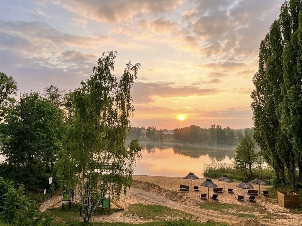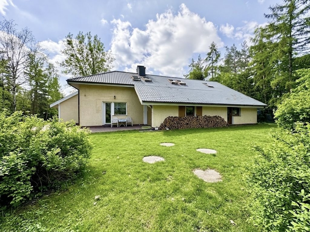 Dom zlokalizowany jest przy ul. Głównej, w okolicy pełnej zieleni i malowniczych jezior. Do plaży sąsiedniego jeziora dotrzemy po zaledwie 5 minutach spaceru, co czyni tę ofertę idealną dla miłośników aktywności na świeżym powietrzu.