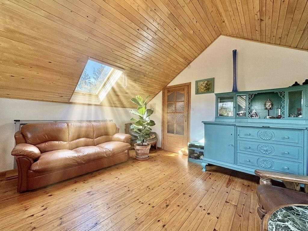 Dom jest wyposażony w nowoczesne okna (PCV oraz drewno), a dach pokryty został blachodachówką, co gwarantuje funkcjonalność i trwałość na lata. Dodatkowo, w bryle budynku znajduje się garaż, odrębne pomieszczenie na przestrzeń do pracy twórczej/biuro/warsztat oraz piwnica, co zwiększa praktyczność tej unikalnej oferty.