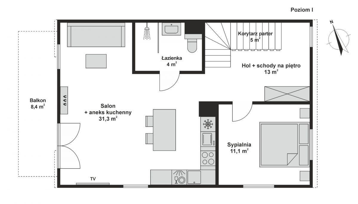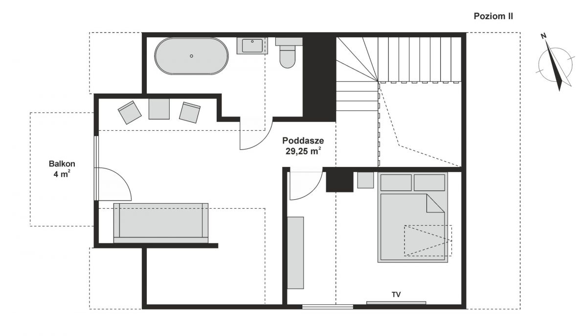 Bardzo słoneczny narożny lokal o powierzchni użytkowej 94 m² oraz całkowitej 118 m². W całym lokalu zainstalowane jest ogrzewanie podłogowe. Pierwsze piętro to przestronny salon z aneksem kuchennym i wyjściem na balkon, a także sypialnia i nowoczesna łazienka z prysznicem oraz wbudowanym nagłośnieniem. Drugie piętro składa się z sypialni, łazienki z wanną i systemem audio oraz otwartej przestrzeni z balkonem, którą można łatwo przekształcić w trzeci pokój lub gabinet. Dom jest w pełni umeblowany, gotowy do zamieszkania.