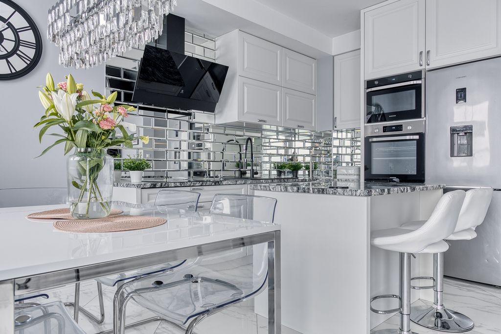 - kuchnia z granitowymi blatami, funkcjonalną wyspą, meblami na wymiar i dużą ilością miejsca do przechowywania