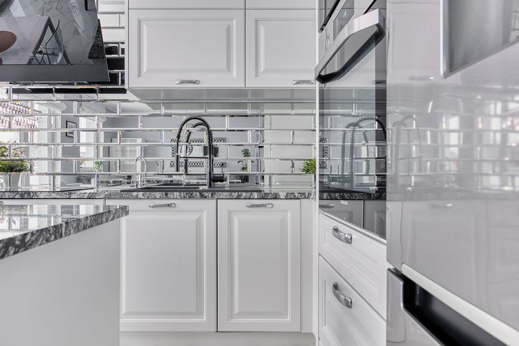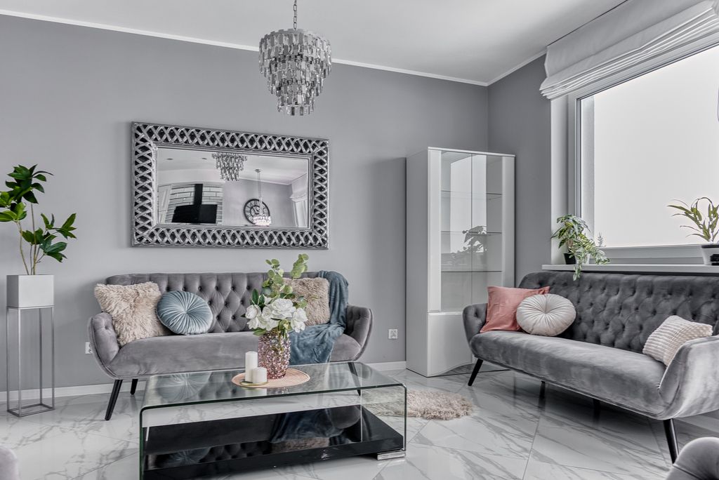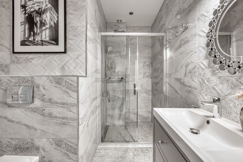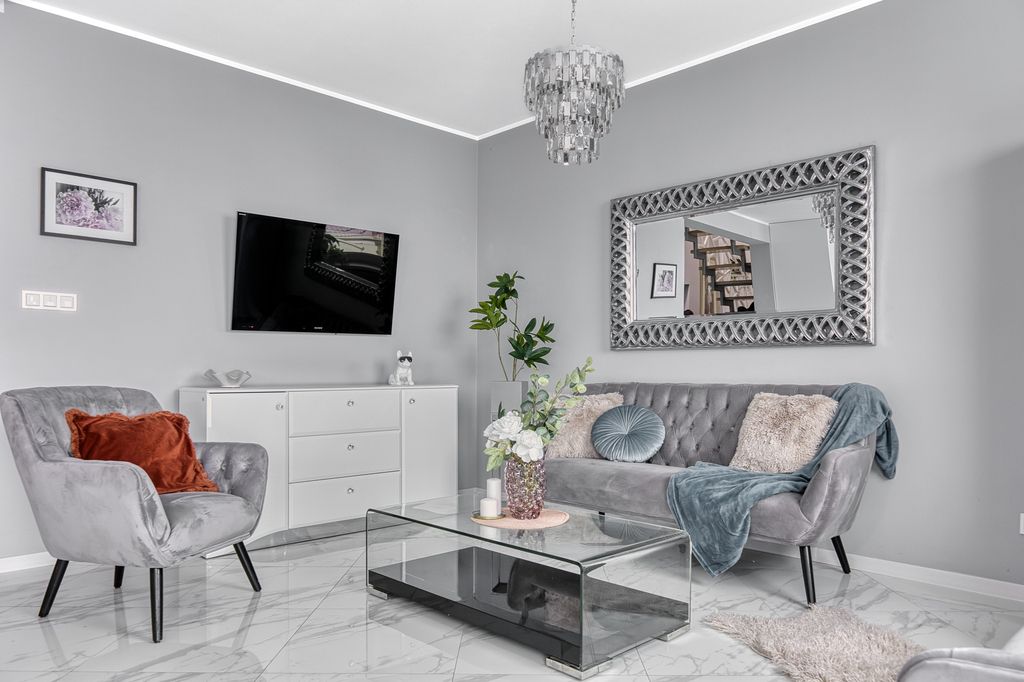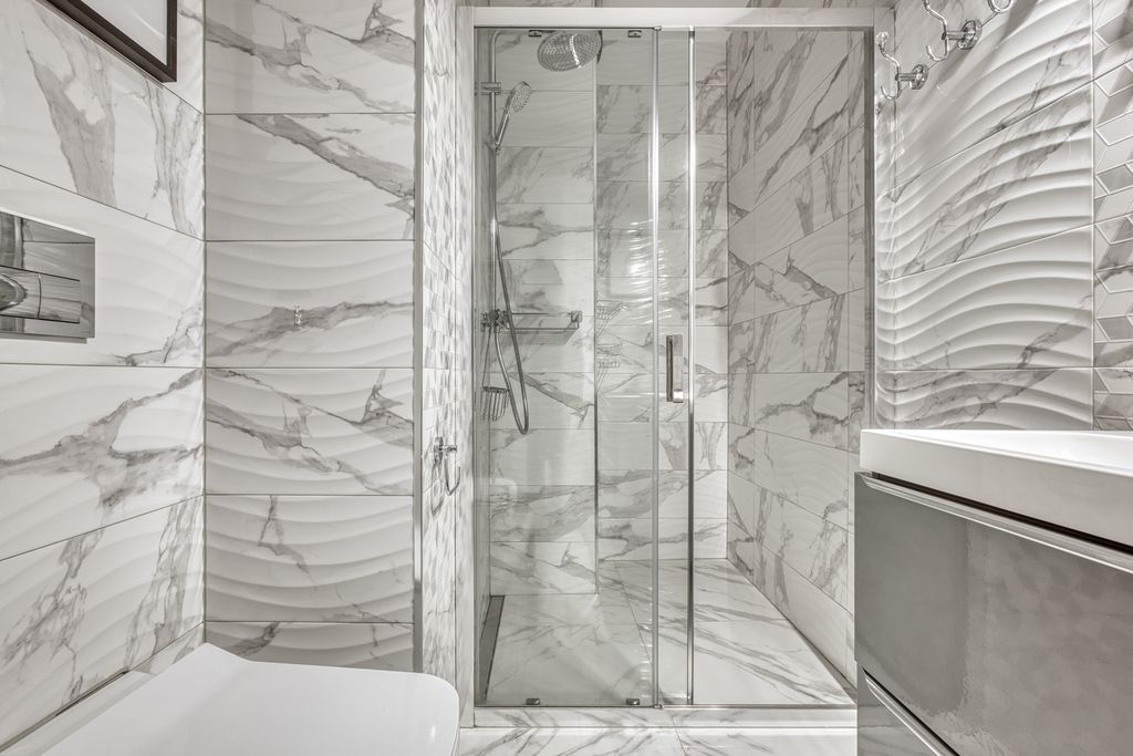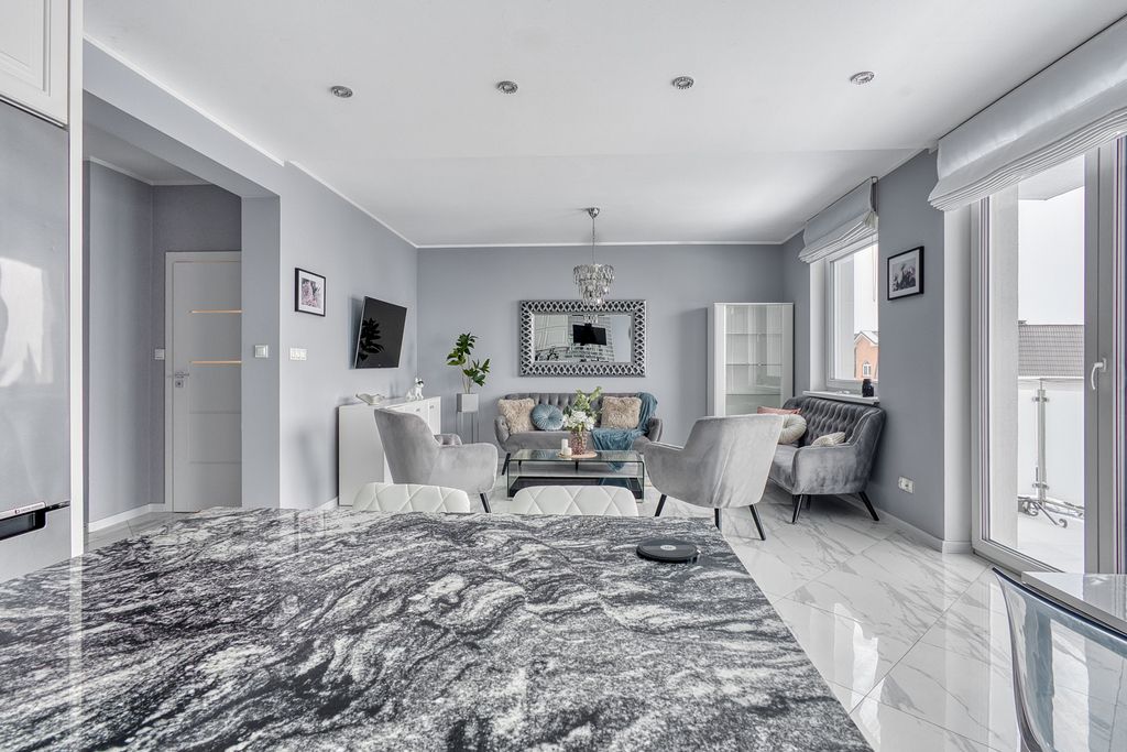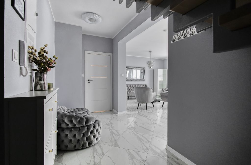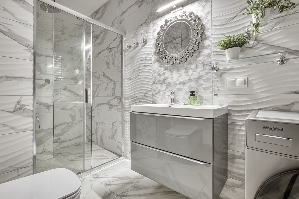 - wysokiej jakości panele oraz wielkoformatowy gres imitujący marmur