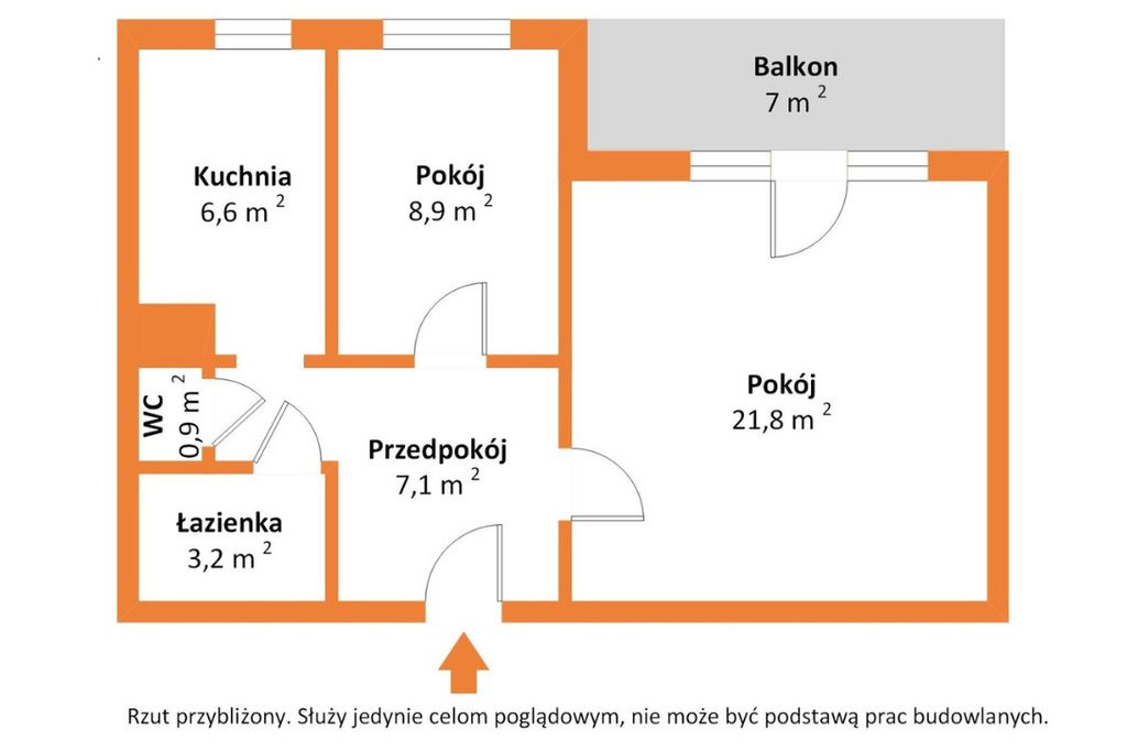 - Metraż: 50 m² (salon, sypialnia, osobna kuchnia, łazienka).