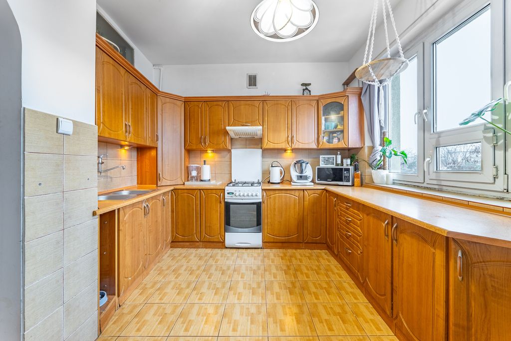 - Kuchnia – dobrze nasłoneczniona i przestronna, oferująca wygodne warunki do przygotowywania posiłków.