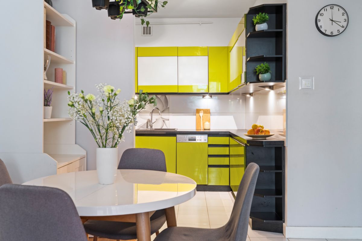 • jasnego salonu z aneksem kuchennym i wyjściem na loggię,