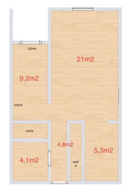 Całkowita powierzchnia mieszkania wynosi 44,5 m².