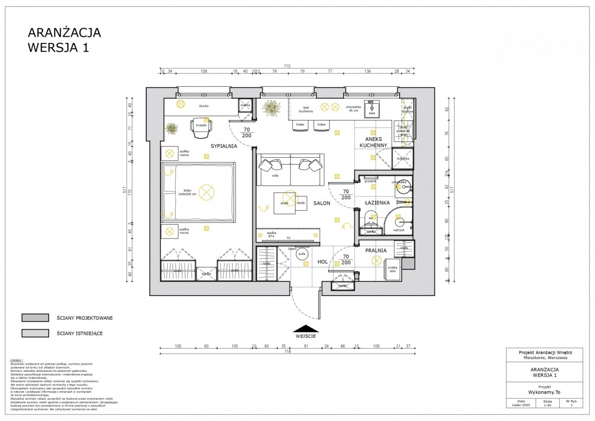 - po remoncie, 1-pokojowe z wydzieloną strefą sypialnianą, możliwość zrobienia 2 pokoi ( projekt w załączniku)