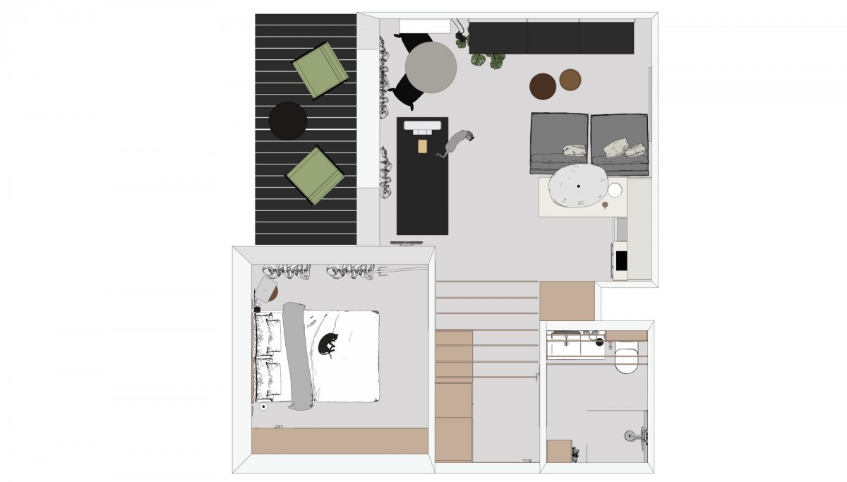 33,34 m2 zostały zaprojektowane przez architekta tak, by maksymalnie wykorzystać przestrzeń.