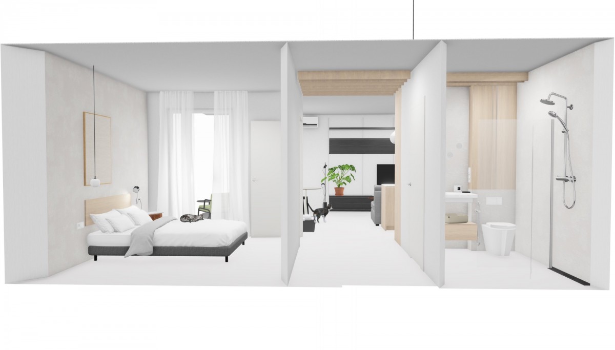 Ogrzewanie podłogowe w całym mieszkaniu: dla wygody oraz oszczędności miejsca i większych możliwości aranżacyjnych, bo kaloryfery zostały zdjęte.