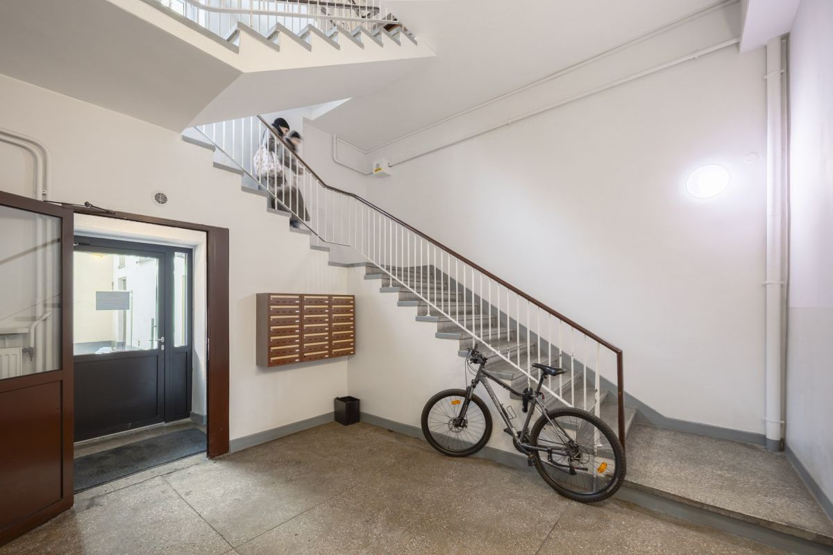 Budynek jest zadbany i dobrze utrzymany, a do dyspozycji mieszkańców pozostaje estetyczne, zielone patio. Sąsiedztwo jest spokojne, a w budynku znajduje się winda.