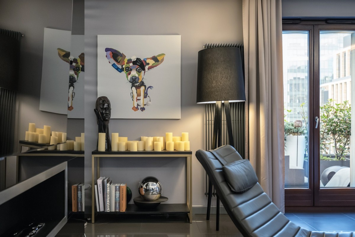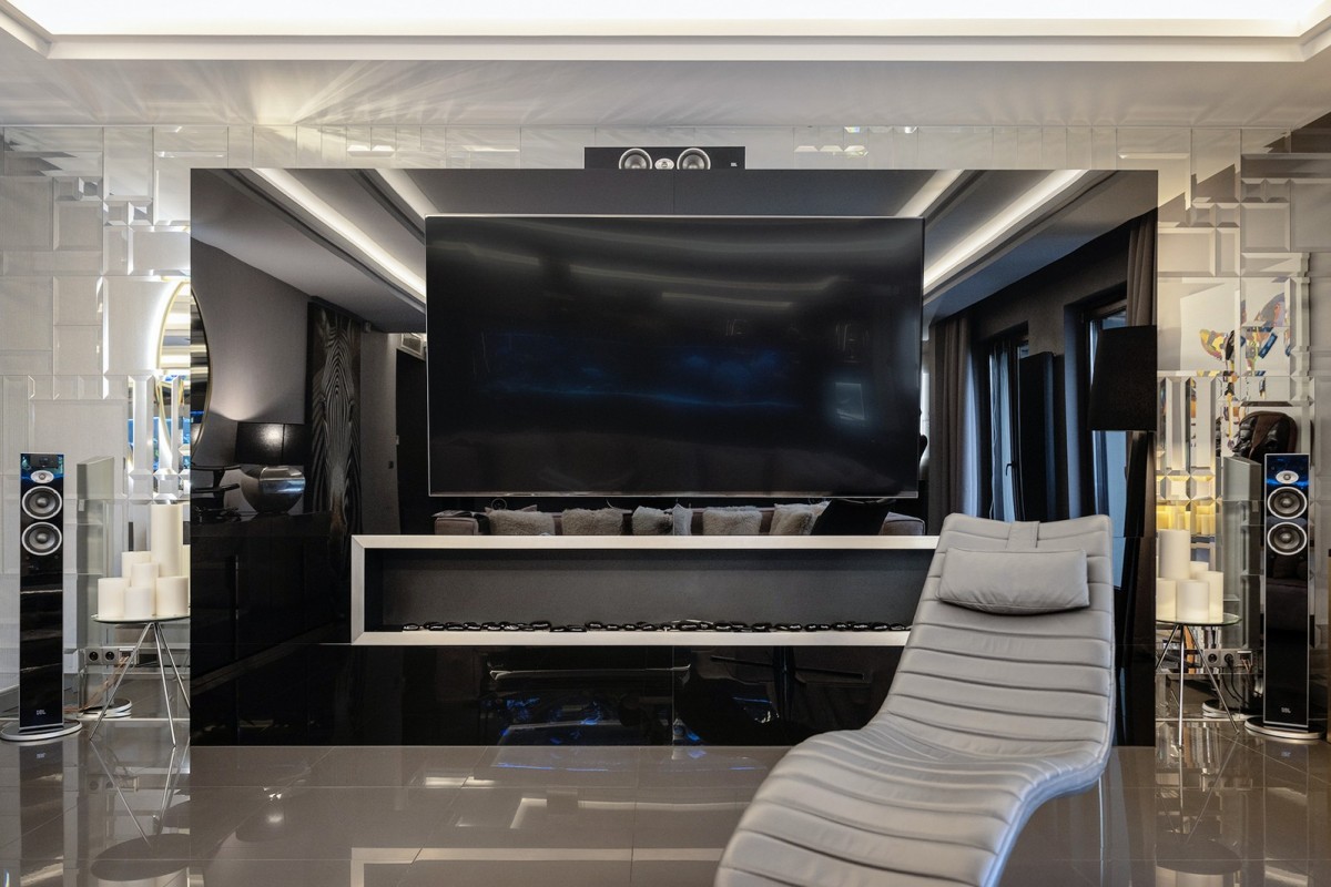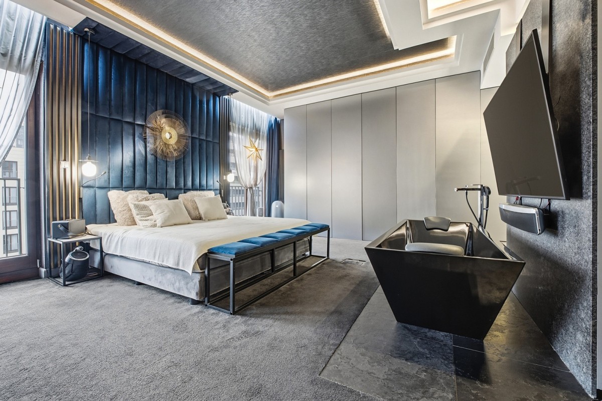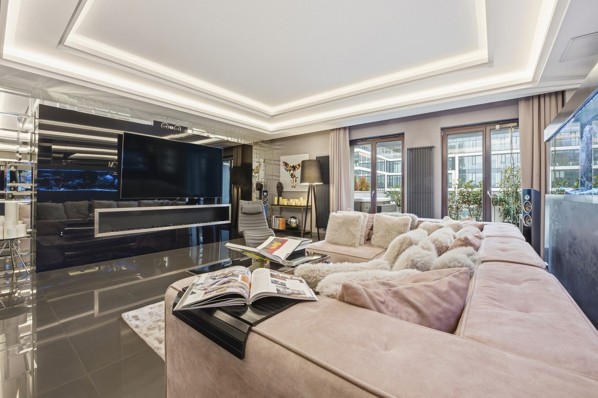 Centralnym punktem apartamentu jest niespotykanej wielkości akwarium oceaniczne. To miejsce, nie tylko stanowi element wystroju. Ono wyznacza własny rytm, w którym woda i refleksy światła koją zmysły.