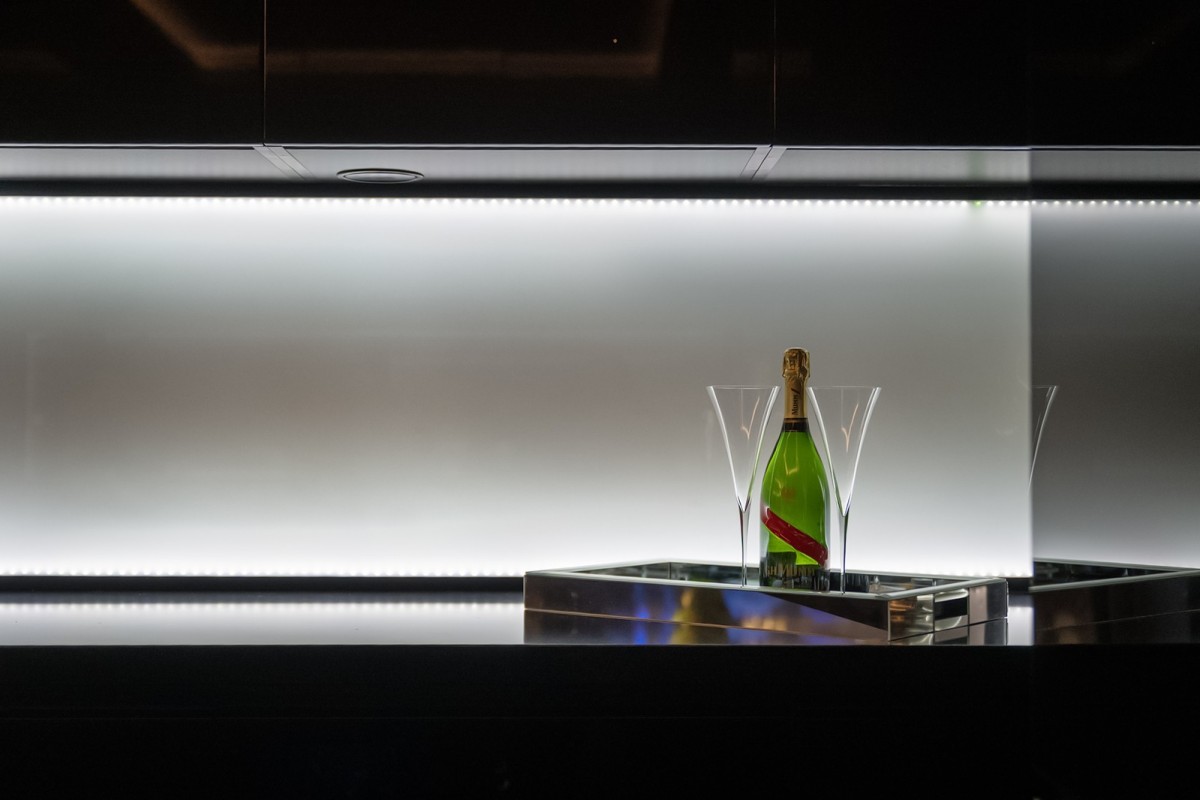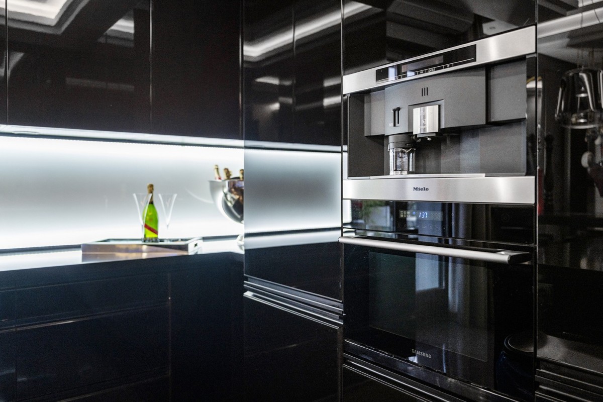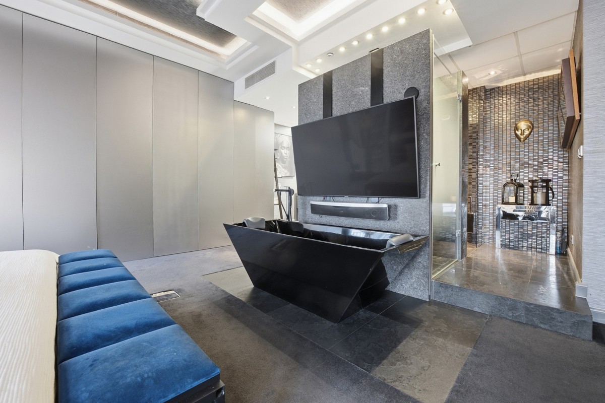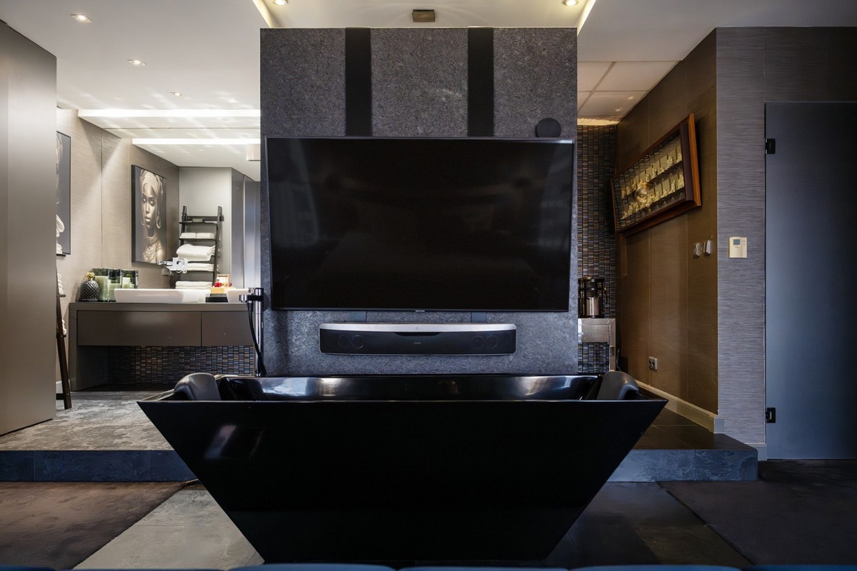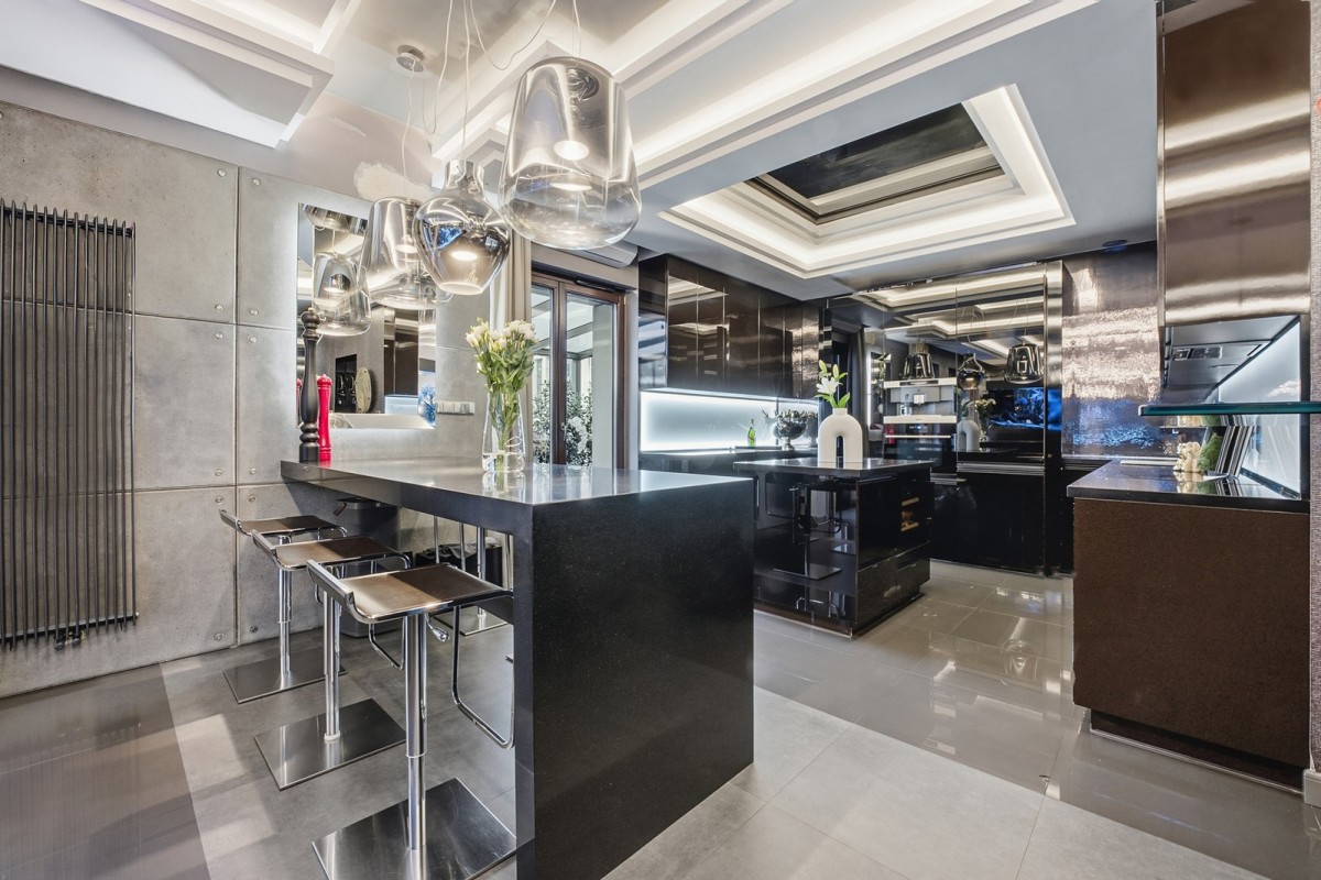 Centralnym punktem apartamentu jest niespotykanej wielkości akwarium oceaniczne. To miejsce, nie tylko stanowi element wystroju. Ono wyznacza własny rytm, w którym woda i refleksy światła koją zmysły.
