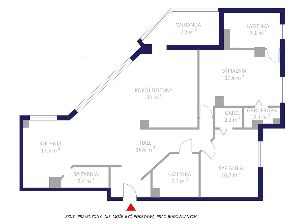 - druga sypialnia – ok. 16 m² garderoba 2,2 m²