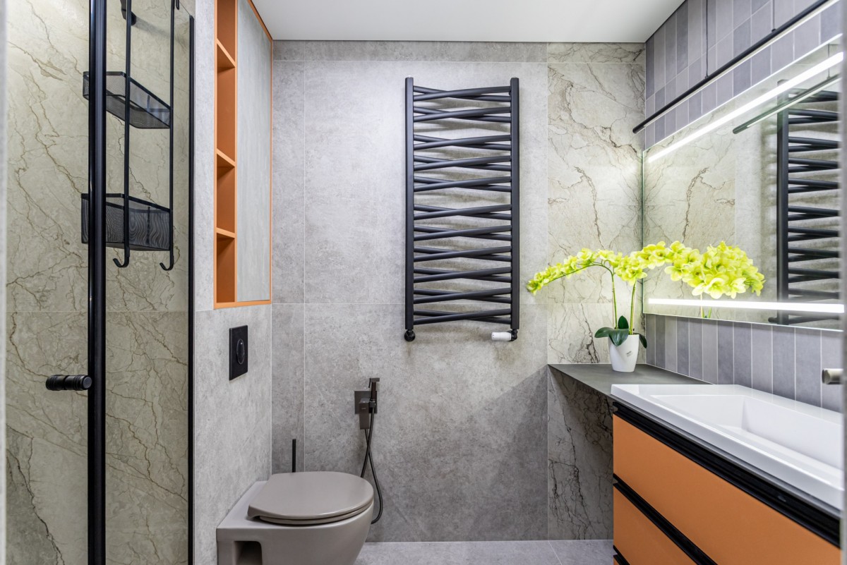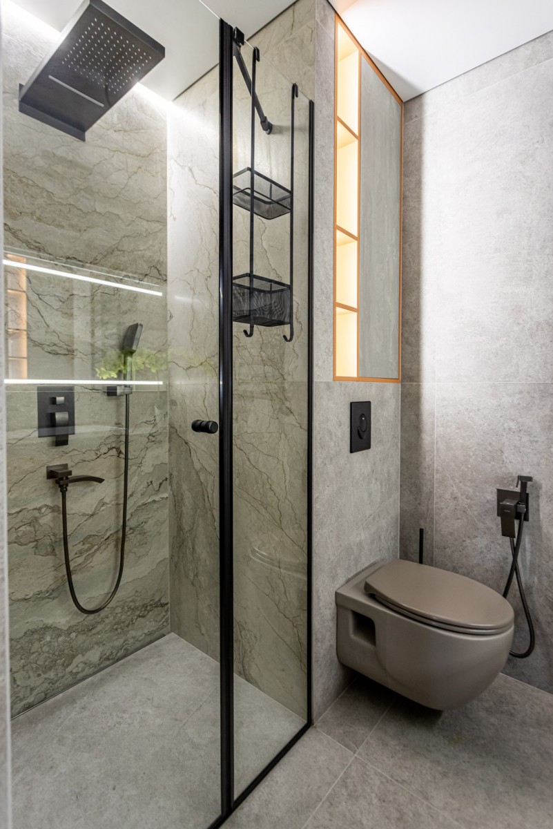 - łazienka z prysznicem typu walk-in z deszczownicą,