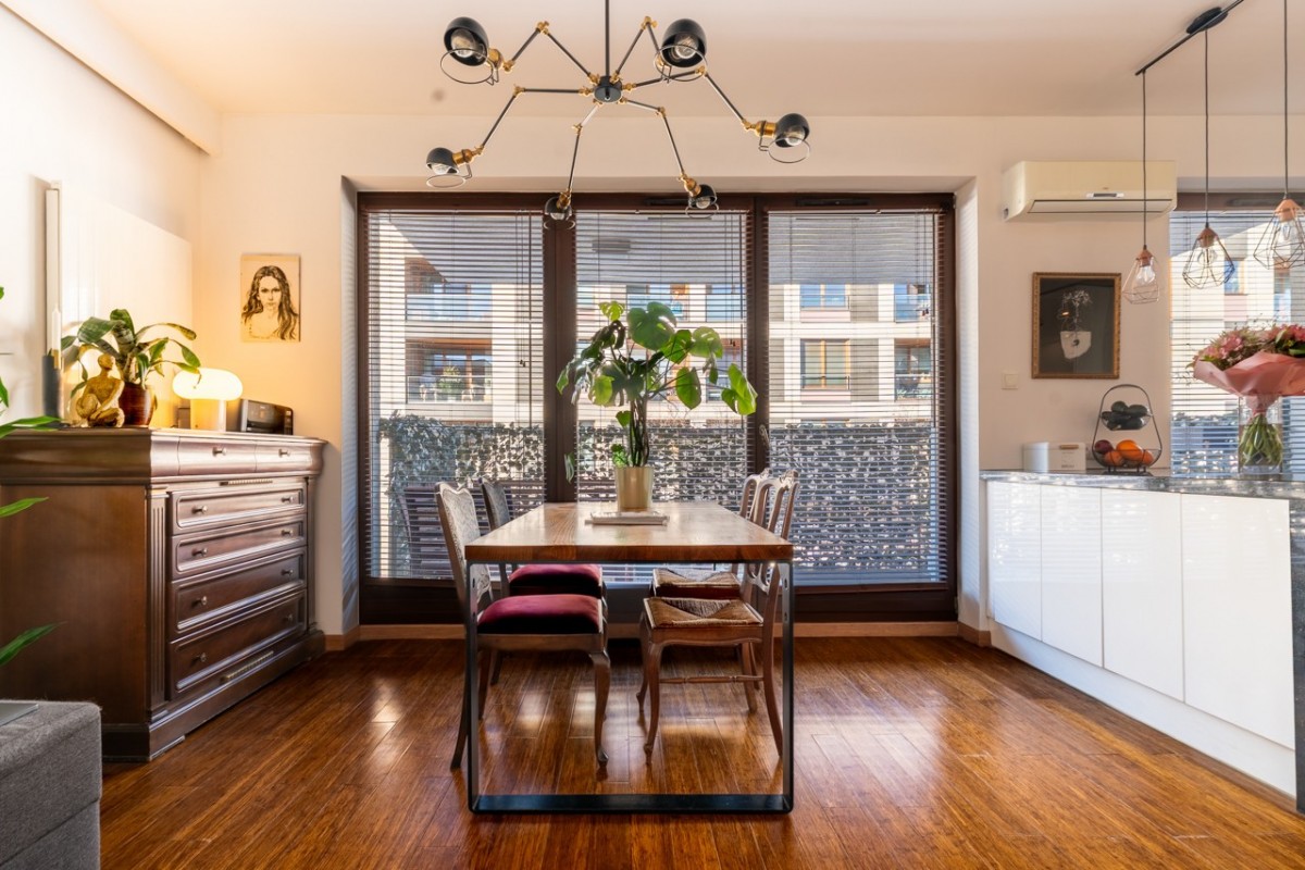 - duże drewniane okna świetnie doświetlające mieszkanie
