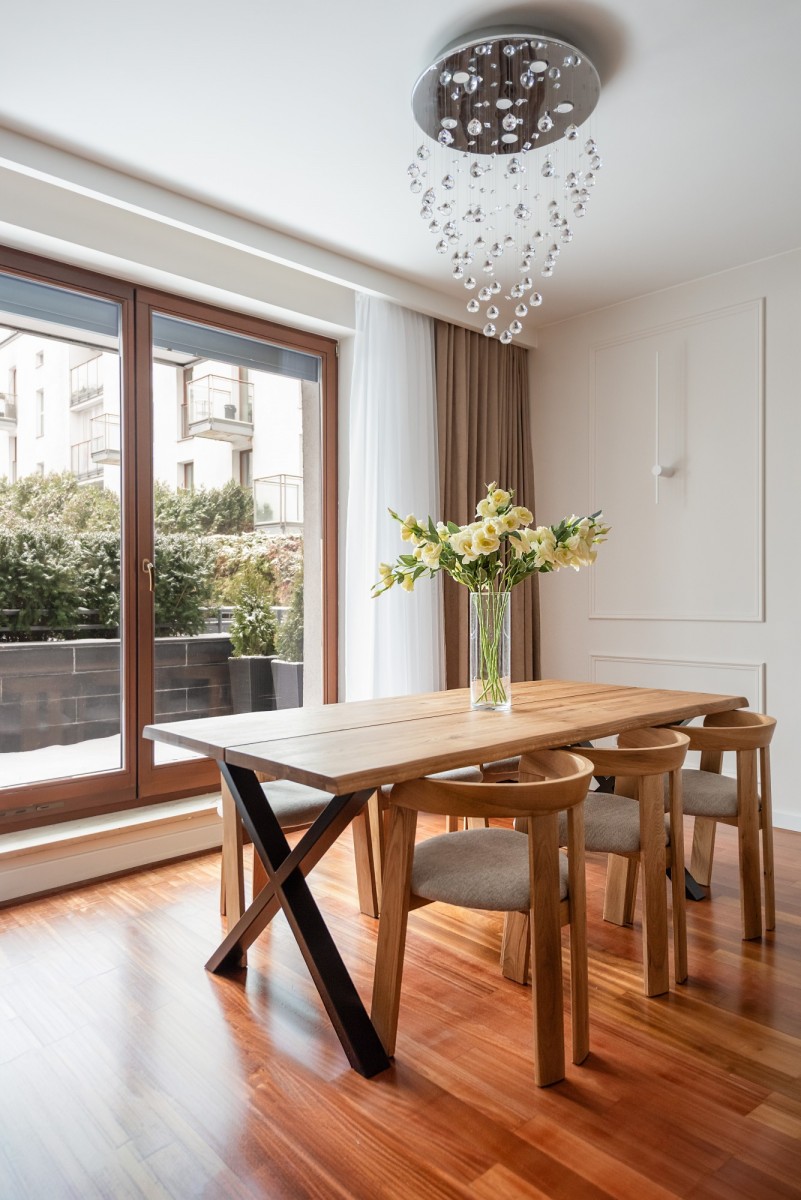 Apartament został kompleksowo zaprojektowany i wykończony w wysokim standardzie, z dbałością o najmniejsze detale. Jest świeżo po generalnym remoncie, w większości umeblowany i gotowy do zamieszkania od zaraz - bez dodatkowych nakładów finansowych. Wnętrza utrzymane są w spójnej, eleganckiej stylistyce. Zasłony i firany wykonano na indywidualne zamówienie, a wszystkie okna wyposażono w rolety antywłamaniowe.