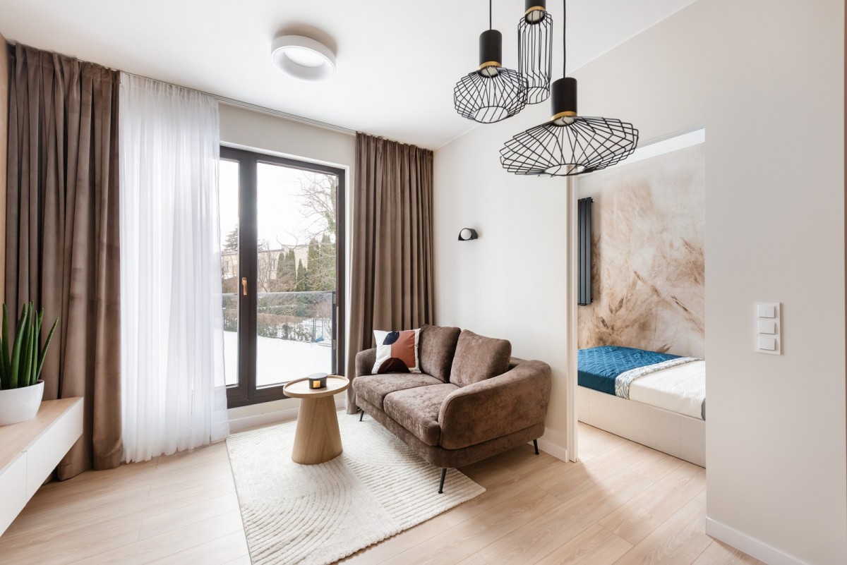 To nowe mieszkanie, wykończone i urządzone od podstaw, jest doskonałym przykładem perfekcyjnie wykorzystanej przestrzeni - każdy metr został zaprojektowany z myślą o maksymalnej funkcjonalności, komforcie i estetyce. Pomimo kompaktowego metrażu wnętrze oferuje wszystko, czego potrzeba do wygodnego życia, bez kompromisów.
