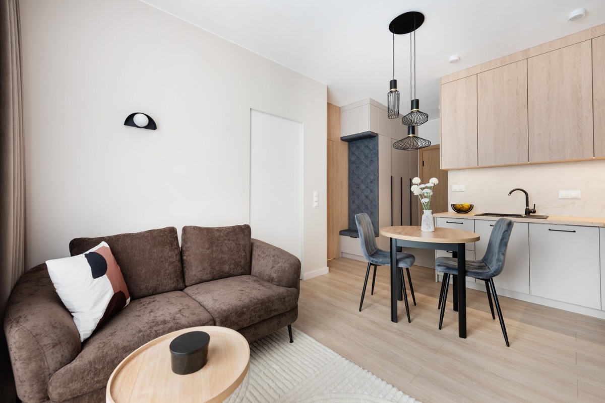 Nowe wnętrze zostało zaprojektowane z dbałością o detale oraz ergonomię. Kuchnia wyposażona jest w pełną zabudowę stolarską oraz wysokiej klasy sprzęt AGD BOSCH. Liczne szafy i schowki sprawiają, że mieszkanie jest wyjątkowo praktyczne mimo niewielkiego metrażu. To idealna propozycja zarówno do zamieszkania, jak i jako bezpieczna inwestycja pod wynajem.