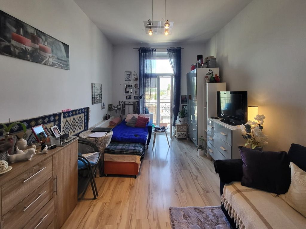 - Duży, wysoki pokój z wyjściem na balkon.