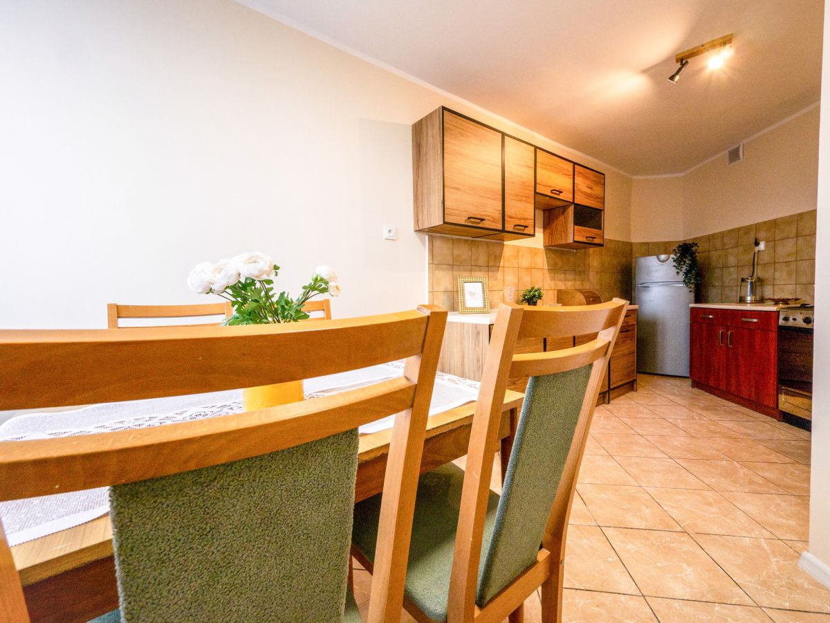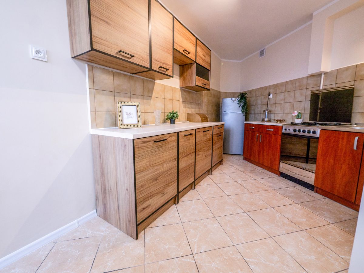 w pełni wyposażonej, funkcjonalnej kuchni,