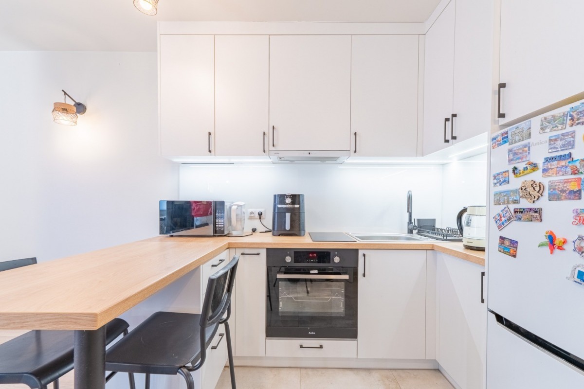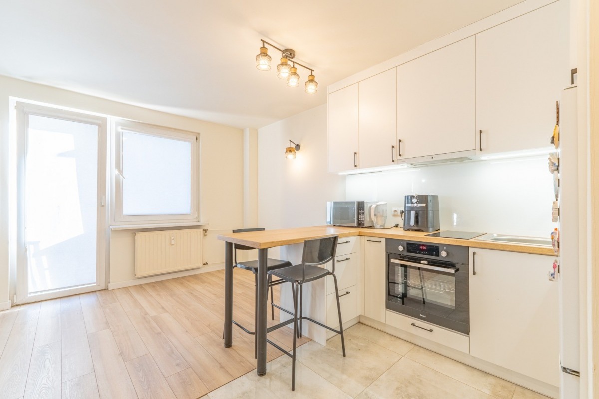 Mieszkanie przeszło gruntowny remont ok 1,5 roku temu, podczas którego zostały wymienione wszystkie instalacje, łazienka została wykończona na nowo, został wykonany nowy aneks kuchenny z meblami wykonanymi na wymiar oraz zostały zakupione nowe sprzęty takie jak lodówka, płyta indukcyjna, piekarnik. Mieszkanie ma balkon francuski.