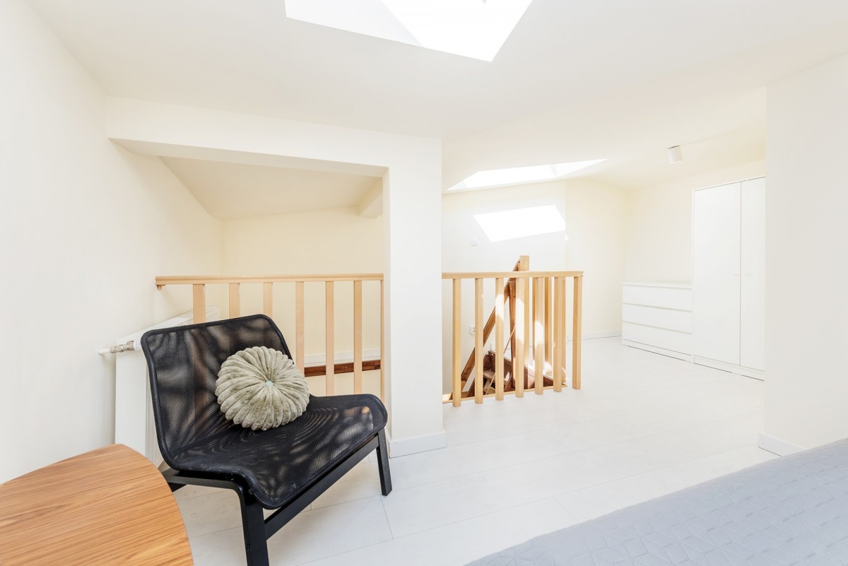 - na górnym poziomie (antresola) urządzono sypialnię, co pozwala wyraźnie oddzielić strefę wypoczynku od dziennej.