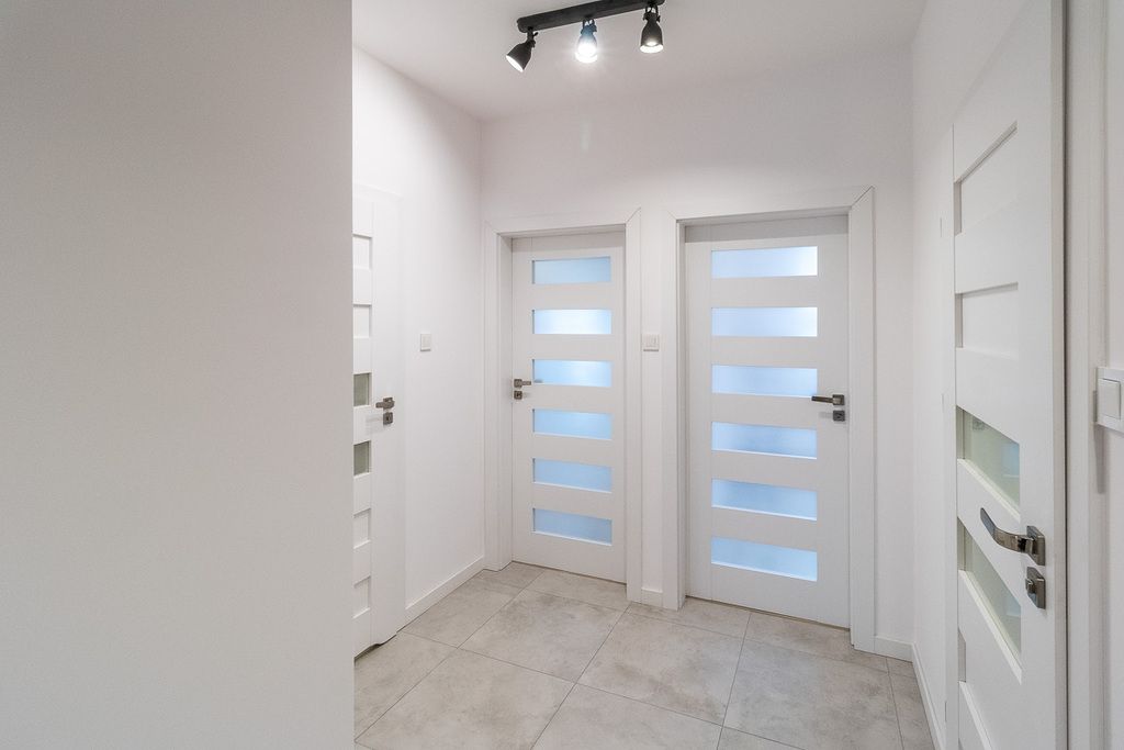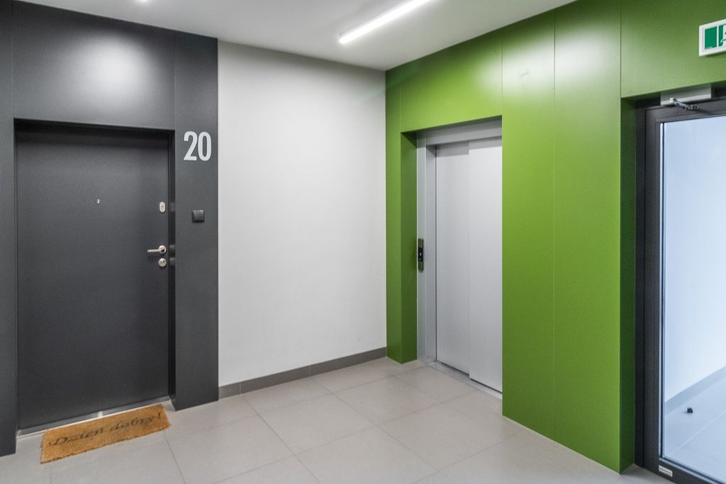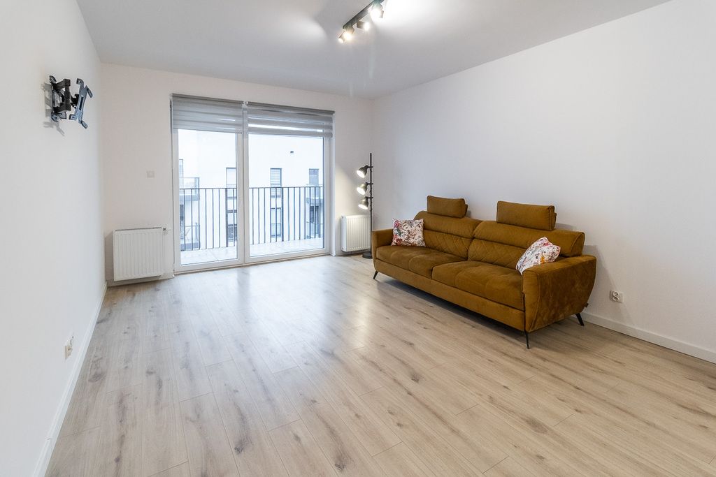 Znajduje się na 5. piętrze wysokiego bloku z 2021 roku, wyposażonego w windę. Mieszkanie jest rozkładowe, o powierzchni 70 m², z oknami wychodzącymi na północ i południe, co zapewnia dobre doświetlenie. Wysokość pomieszczeń to 273 cm. Podłogi wykończone panelami i płytkami. Drzwi wejściowe antywłamaniowe gwarantują bezpieczeństwo.
