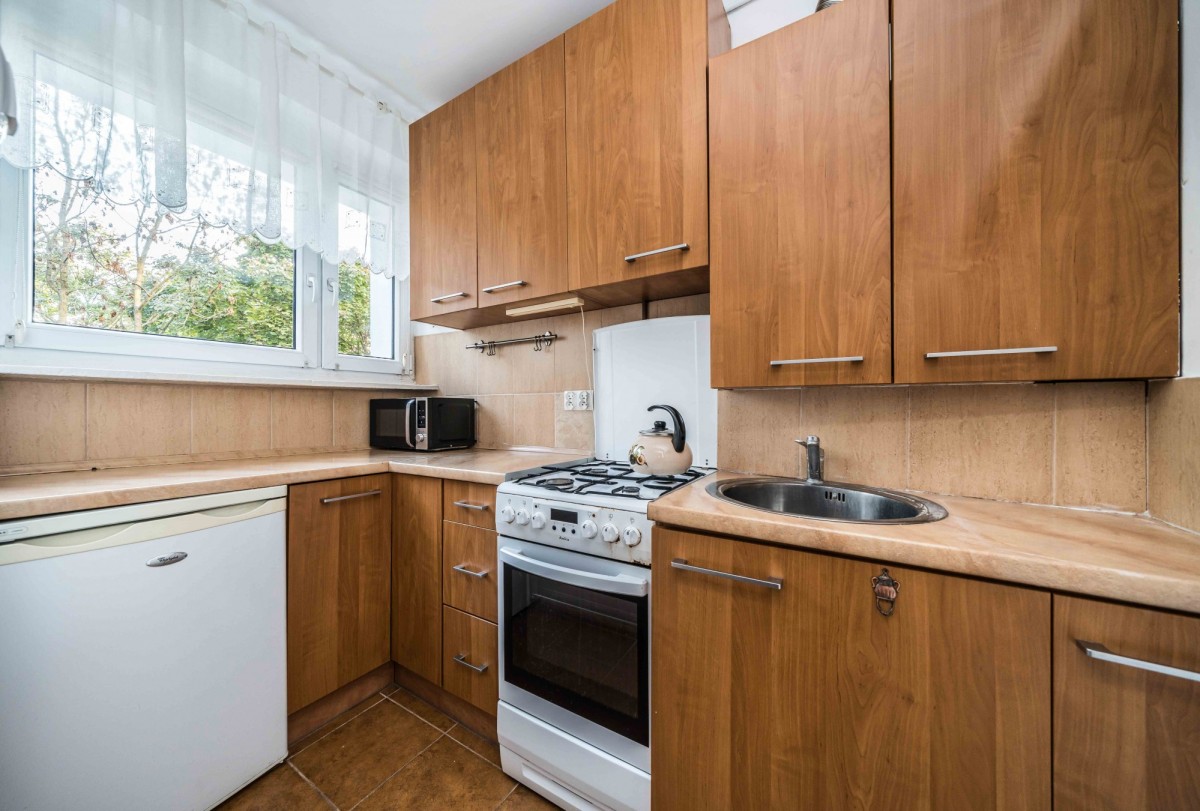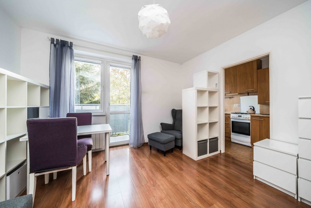 Na wynajem ładna kawalerka z balkonem na Grunwaldzie - składa się z salonu, kuchni i łazienki i przynależy do niej piwnica.