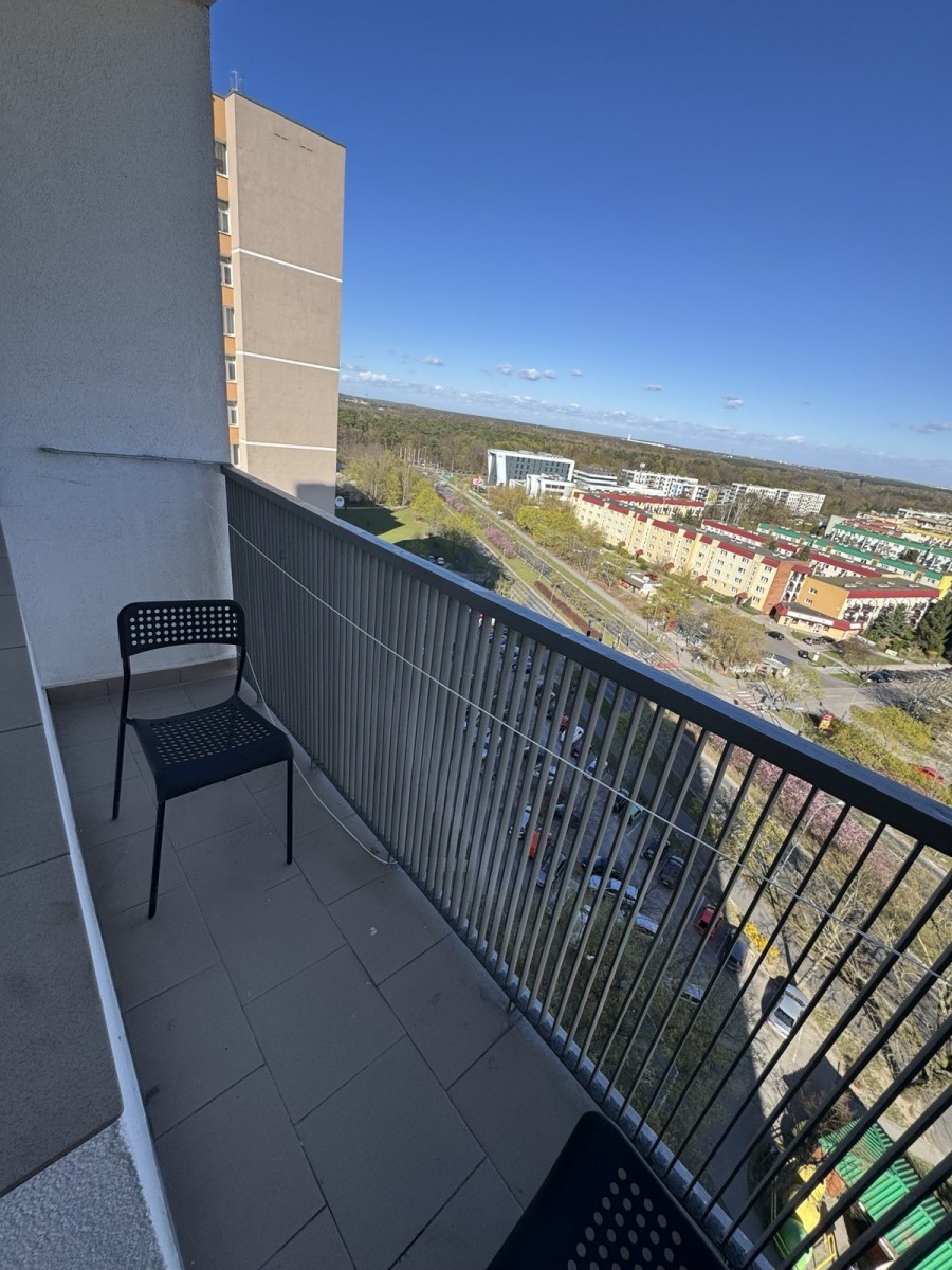 Mieszkanie na 12 piętrze, składa się z salonu z balkonem, osobnej kuchni z oknem, dwóch sypialni, łazienki i korytarza.