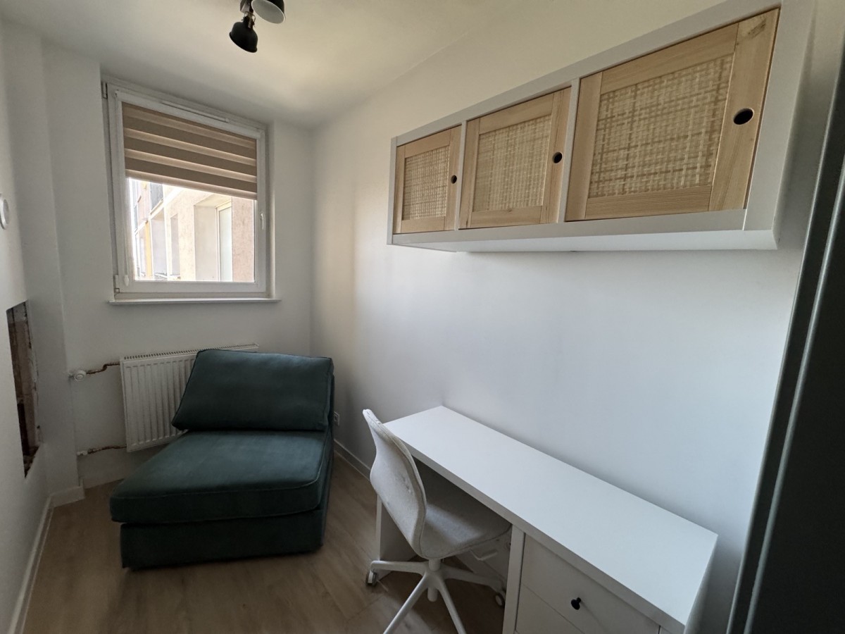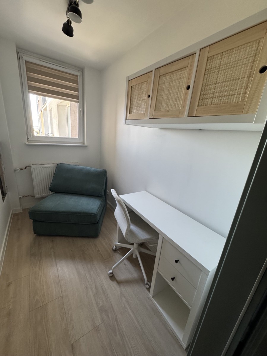 - Mały pokój z biurkiem szafkami i rozkładaną leżanką ( na jednoosobowe łóżko)
