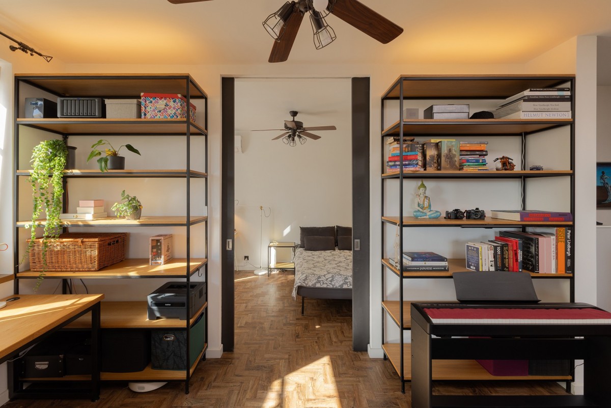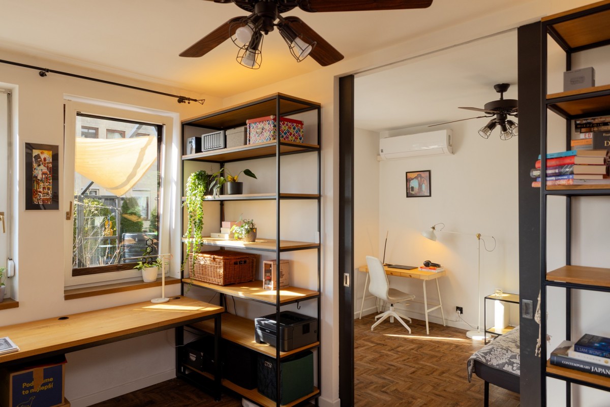 Układ dobrze odpowiada także osobom pracującym z domu. W przestrzeni dziennej wydzielone jest miejsce do pracy , bez poczucia, że praca wchodzi w strefę prywatną.