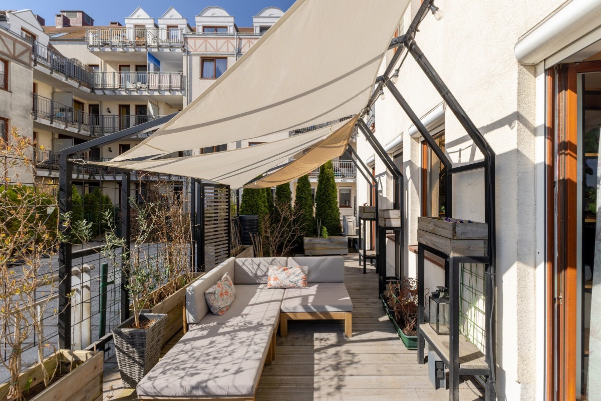 28-metrowy taras z roślinnością i miejscem do wypoczynku