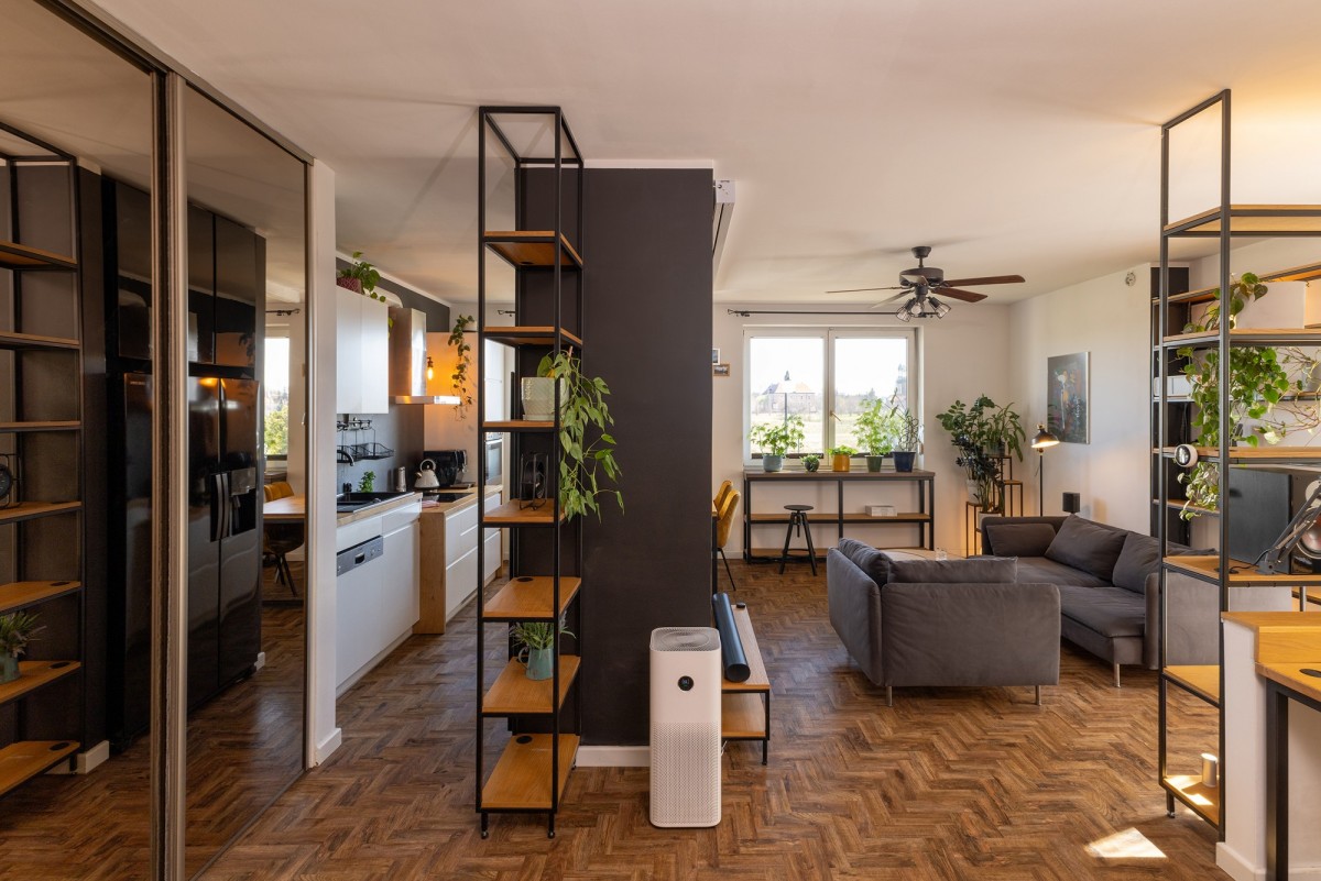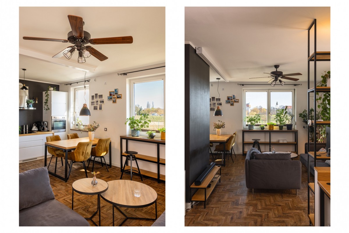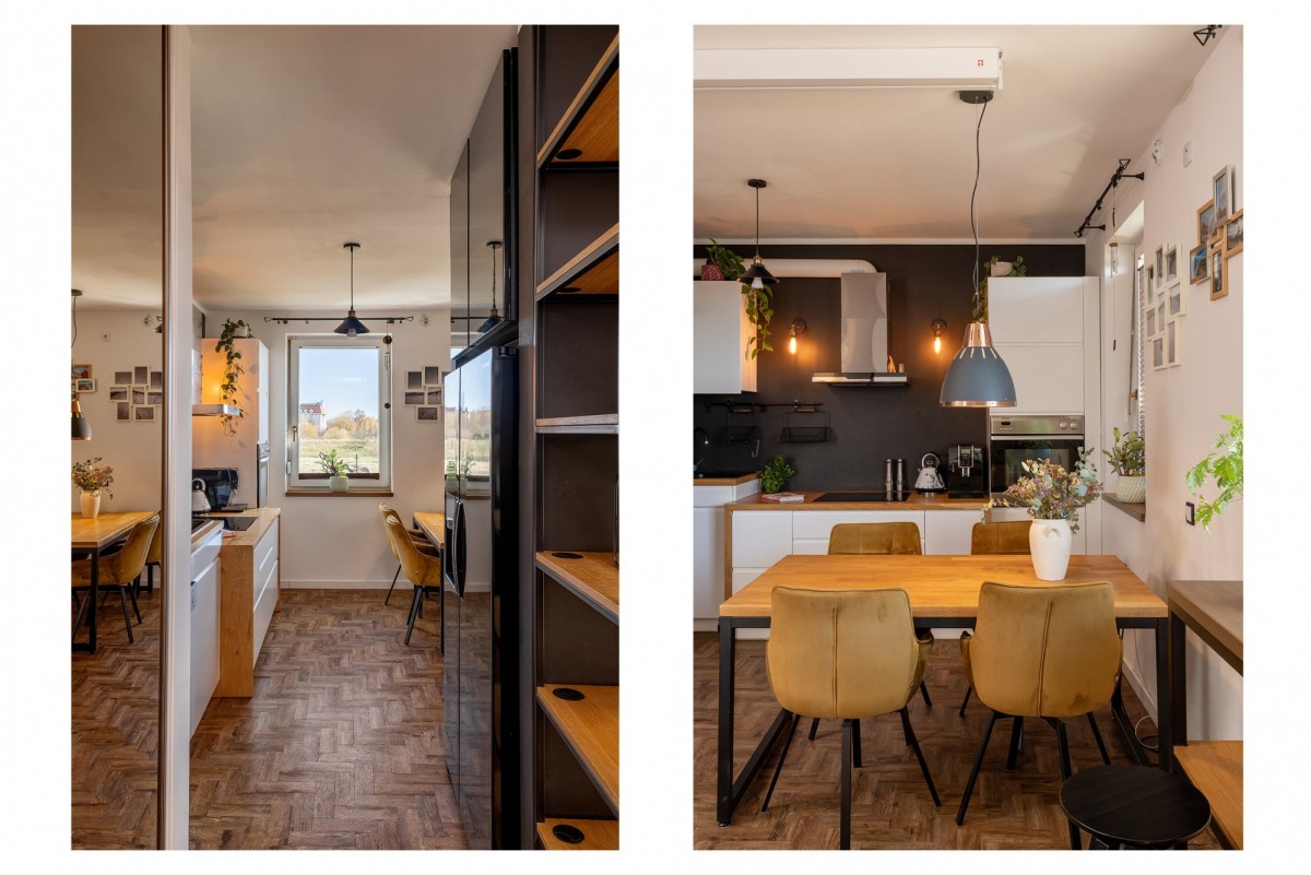 To propozycja dla osób, które lubią otwarte wnętrza z wyraźnie zorganizowanymi funkcjami, ale bez poczucia ciasnoty i podziału na wiele małych pomieszczeń.