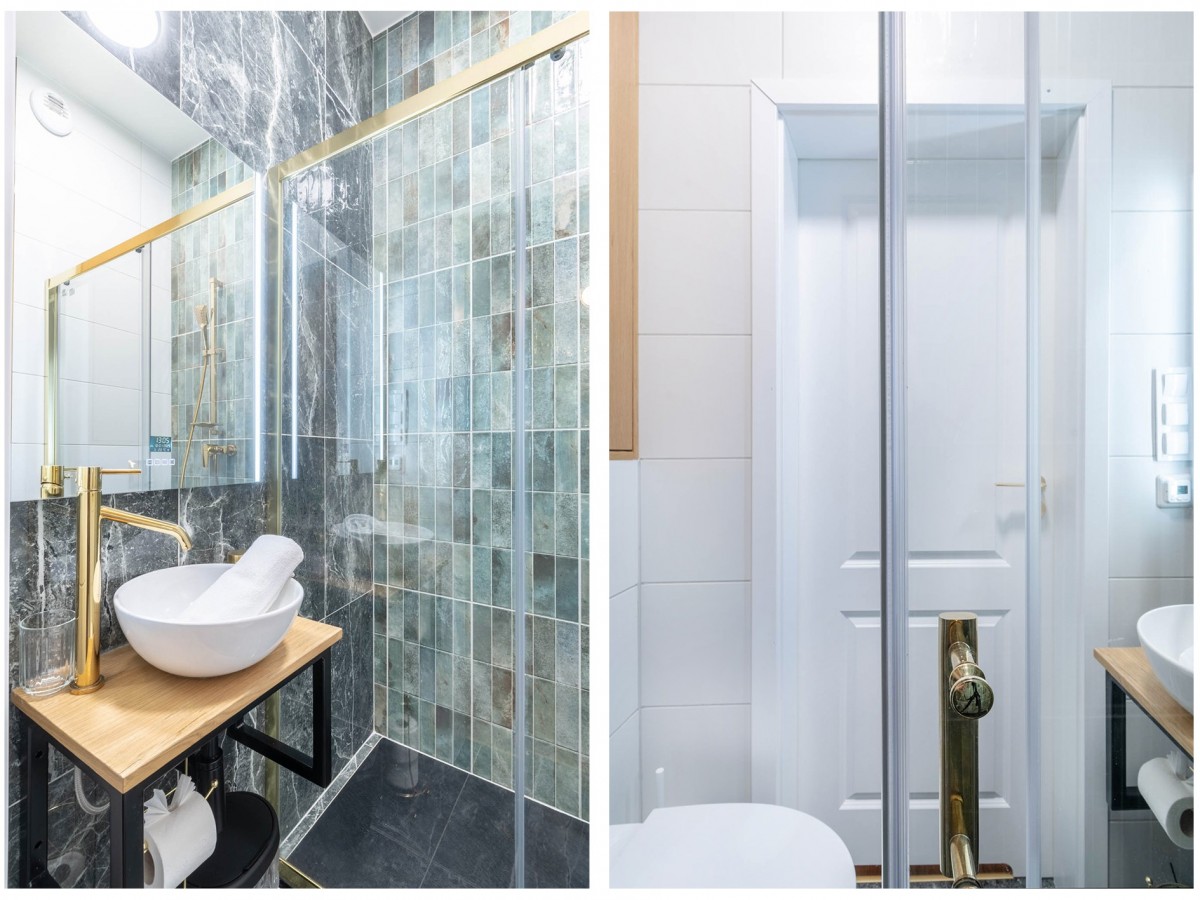 - nowoczesna łazienka z prysznicem,