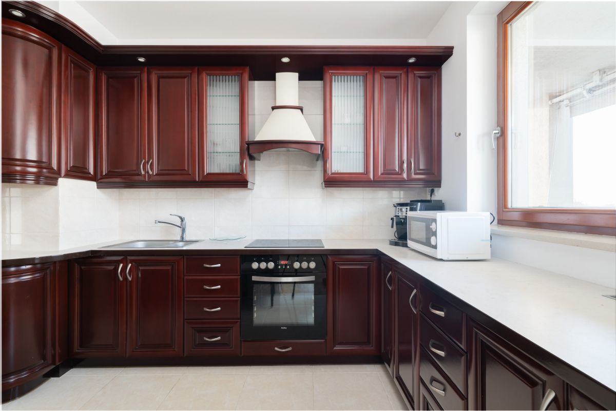 Kuchnia: Oddzielna, wyposażona w nowoczesne meble kuchenne na zamówienie. Dostępna zarówno z korytarza, jak i salonu.