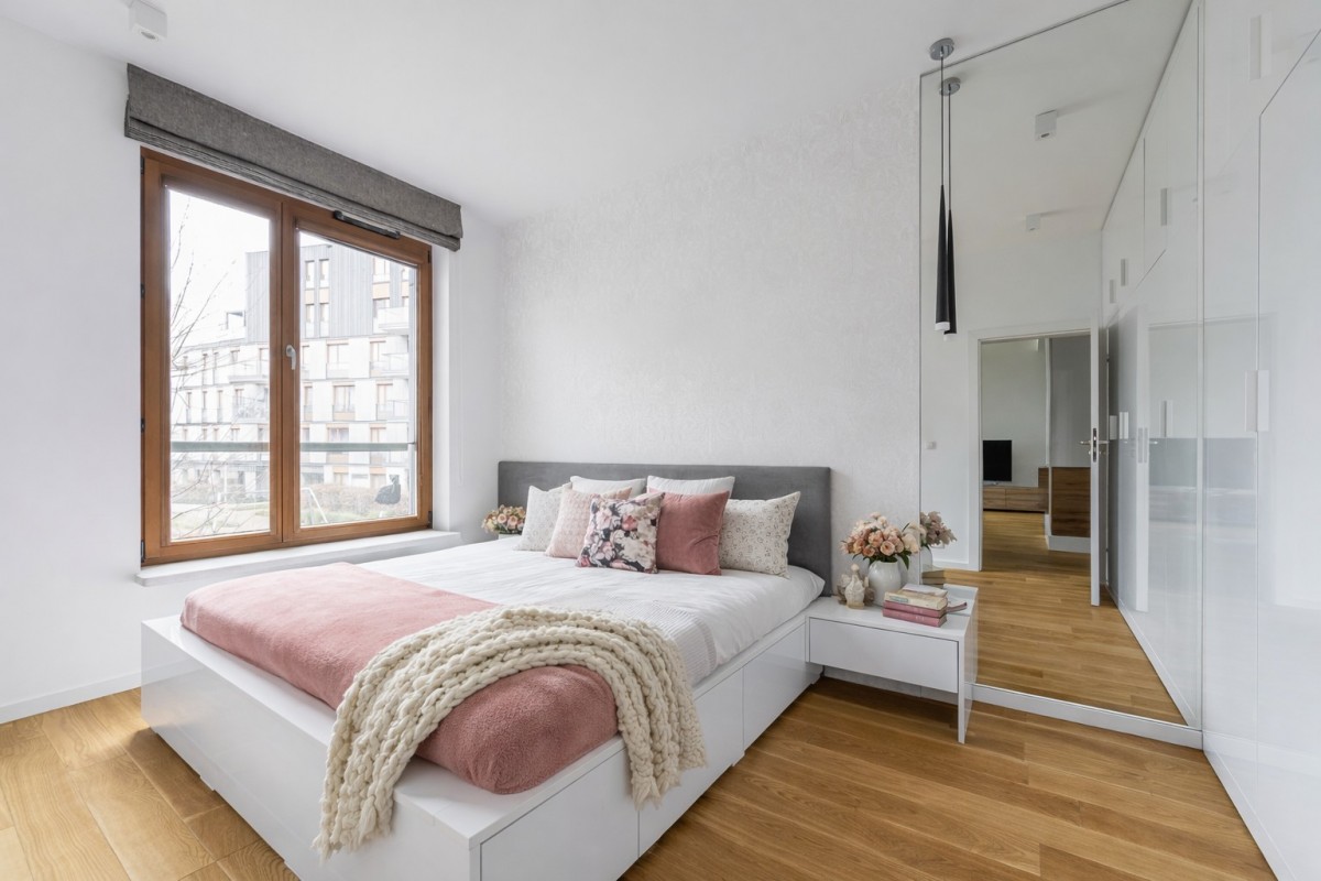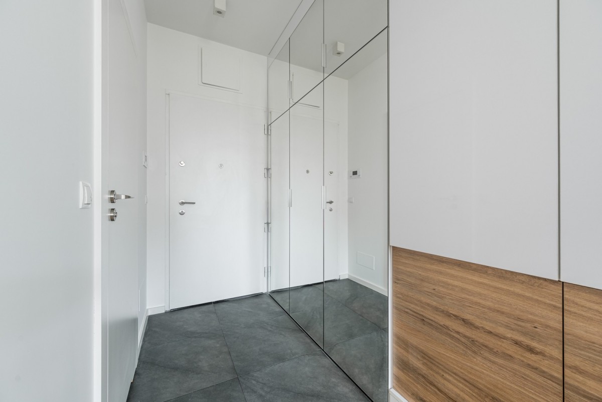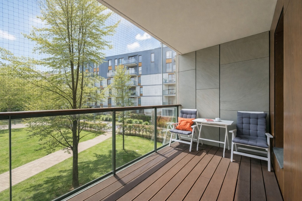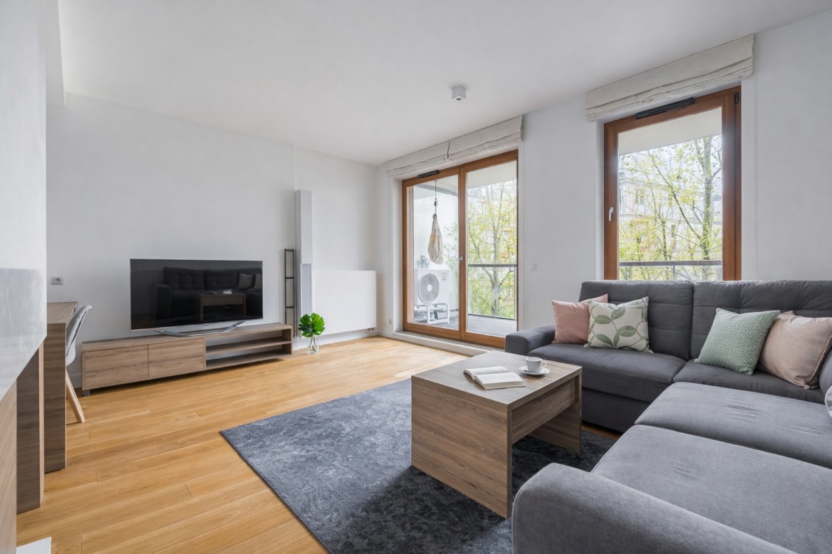 Do wynajęcia nowoczesne 2-pokojowe mieszkanie o powierzchni 50 m², położone przy ul. Bernardyńskiej 16B w prestiżowej inwestycji Mokotów Park. Lokal znajduje się na 1. piętrze 5-piętrowego apartamentowca z windą.