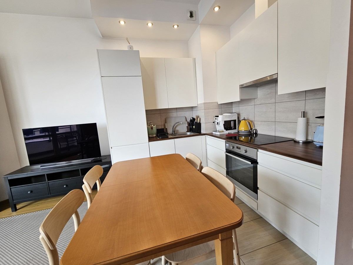 Do wynajęcia mieszkanie o pow. 45 m², wysokie 3 metry, zlokalizowane na 5. piętrze w budynku 6-piętrowym z 2016 r., na osiedlu zamkniętym z recepcją i ochroną.
