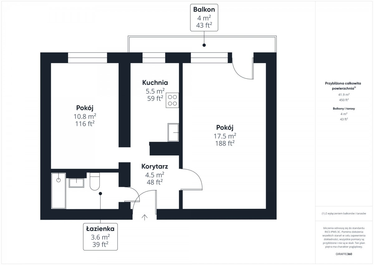 Metraż: 43 m²